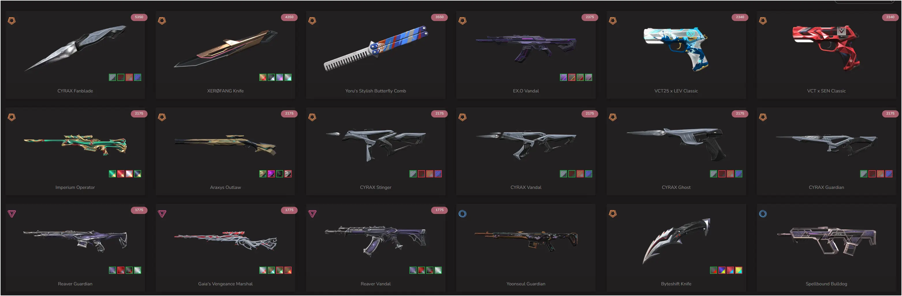 Ap Sever | CYRAX Bundle New, XERØFANG Knife , Yoru's Stylish Butterfly Comb , EX.O Vandal , VCT25 x LEV Classic , VCT x SEN Classic , Imperium Operator , Araxys Outlaw , Reaver Guardian , Gaia's Vengeance Marshal , Reaver Vandal