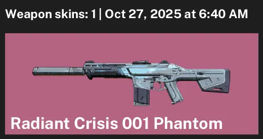 🥞 AP 📗 Unranked 🌂 1 Skins 🤢 64 VP 🦣 13 Agents 🏯 Value: 1775 VP 🎧 Radiant Crisis 001 Phantom