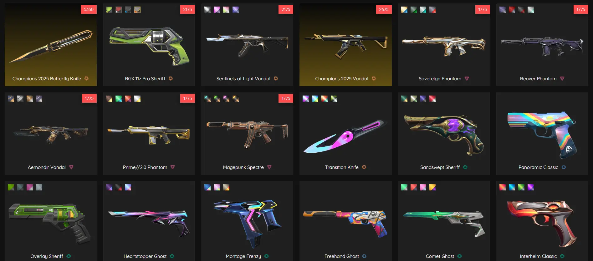 ( EU ) 29 Skins | Champions 2025 Bundle | RGX 11z Pro Sheriff | Sentinels of Light Vandal | Aemondir Vandal | Sovereign Phantom | Instant Delivery
