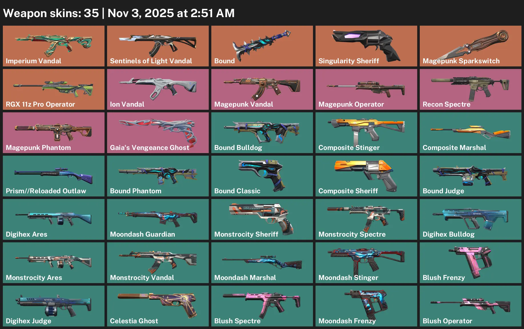 🐼 EU 📩 Gold 1 🍌 35 Skins 🚘 170 VP 😍 18 Agents 🥫 Value: 24975 VP 💡 Imperium Vandal 🍁 Sentinels of Light Vandal 🌤 Bound 🏎 Singularity Sheriff 🍆 Magepunk Sparkswitch ⛵️ RGX 11z Pro Operator