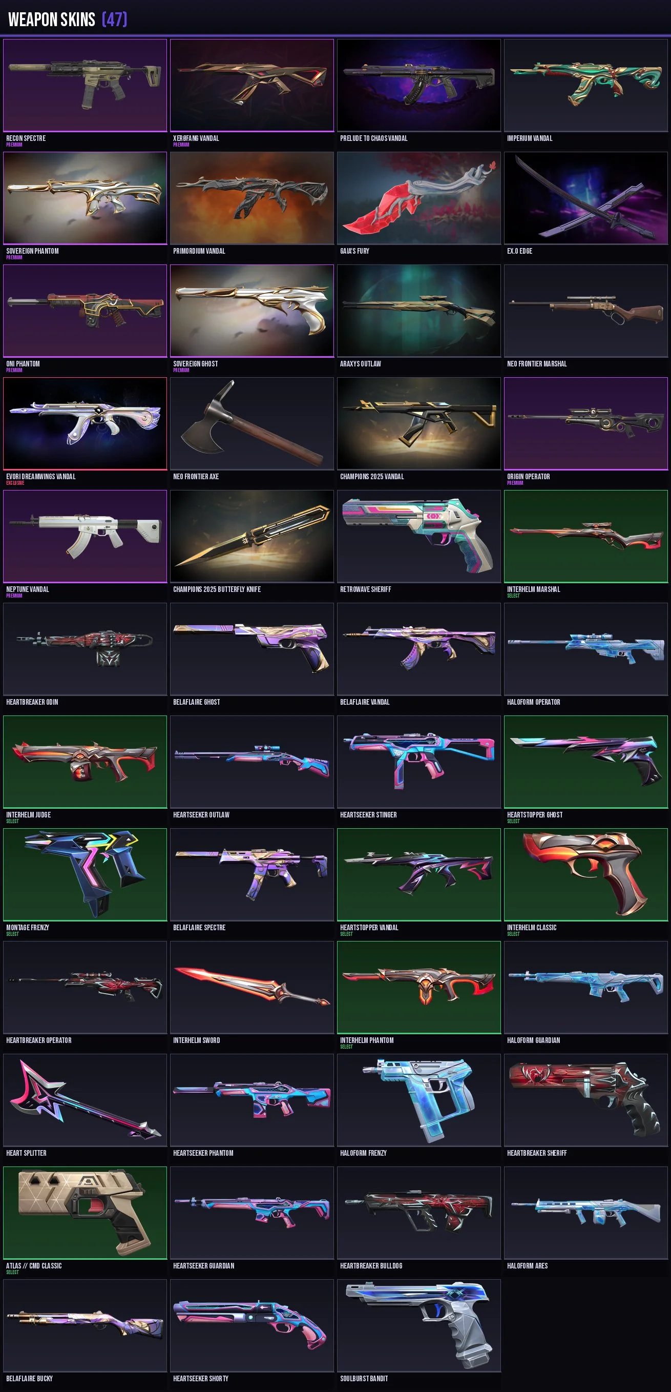 🌍 EU/Gold 2 ★ 47 Skins + 24 Agents ★ Champions 2025 Butterfly Knife / Champions 2025 Vandal / EX.O Edge / Oni Phantom / Prelude to Chaos Vandal / Recon Spectre / XERØFANG Vandal / Imperium Vandal