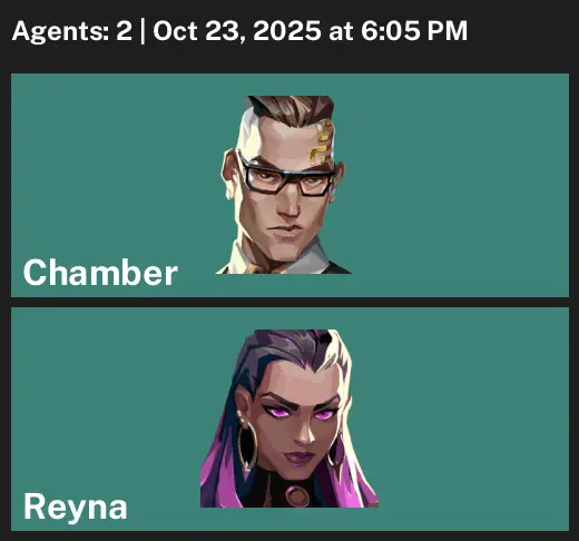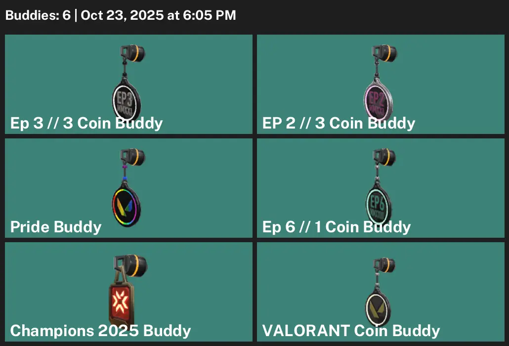 🏖 NA 🛼 Unranked 🏋️♂️ 4 Skins 🤔 10 VP 💰 2 Agents 🚏 Value: 12375 VP 🙂↔️ Champions 2025 Vandal 📬 Champions 2025 Butterfly Knife 🫐 Nocturnum Phantom 🗻 Prelude to Chaos Phantom