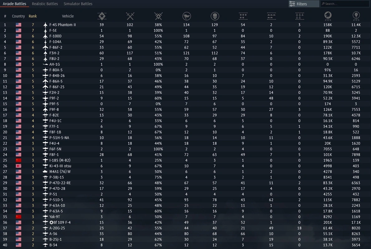 🦅5 Jets 7 rank USA🦅F-5E🦅F-4E Phantom II🦅F-4J Phantom II🦅F-8E🦅F-4C Phantom II🦅F-4S Phantom II🦅 Bf 109 F-4