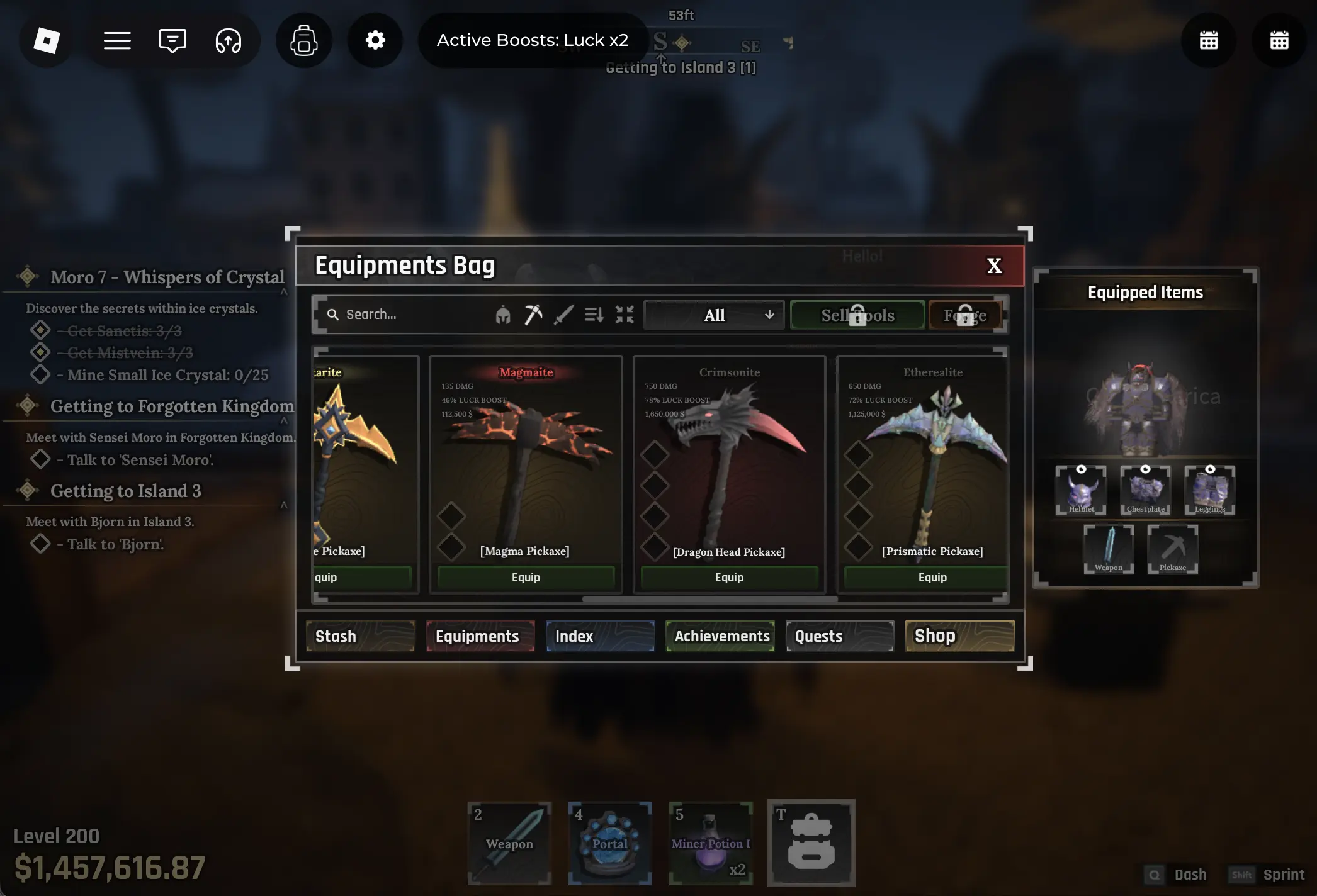 ✅ Instant Delivery 👺 Demon Race ⛏️ Dragon Head + Prismatic + Magma + Arcane ⚔️ LVL 200 💰 1.4M+ Coins 🗡️ Frost Fossil Great Sword 👿【THE FORGE】