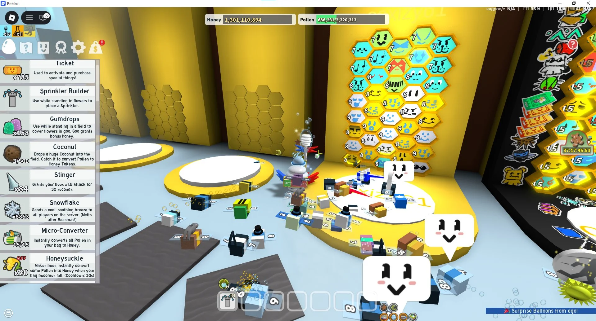 ROBLOX1053//ACCOUNT WITH 5 EVENT /40 Gummy bee Bee + Vicious Bee + 785 tickets 1kkk honey/8-7 hive
