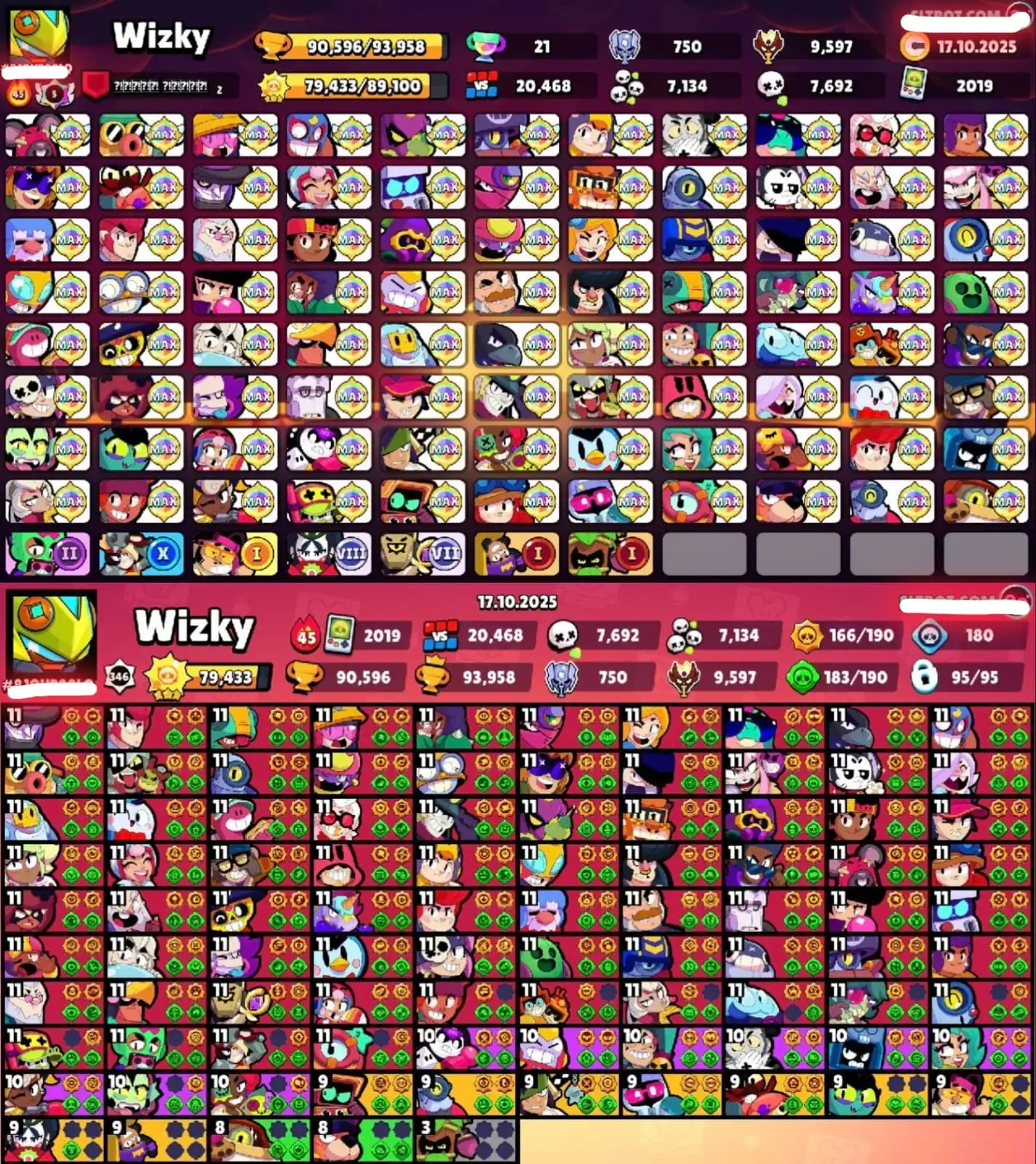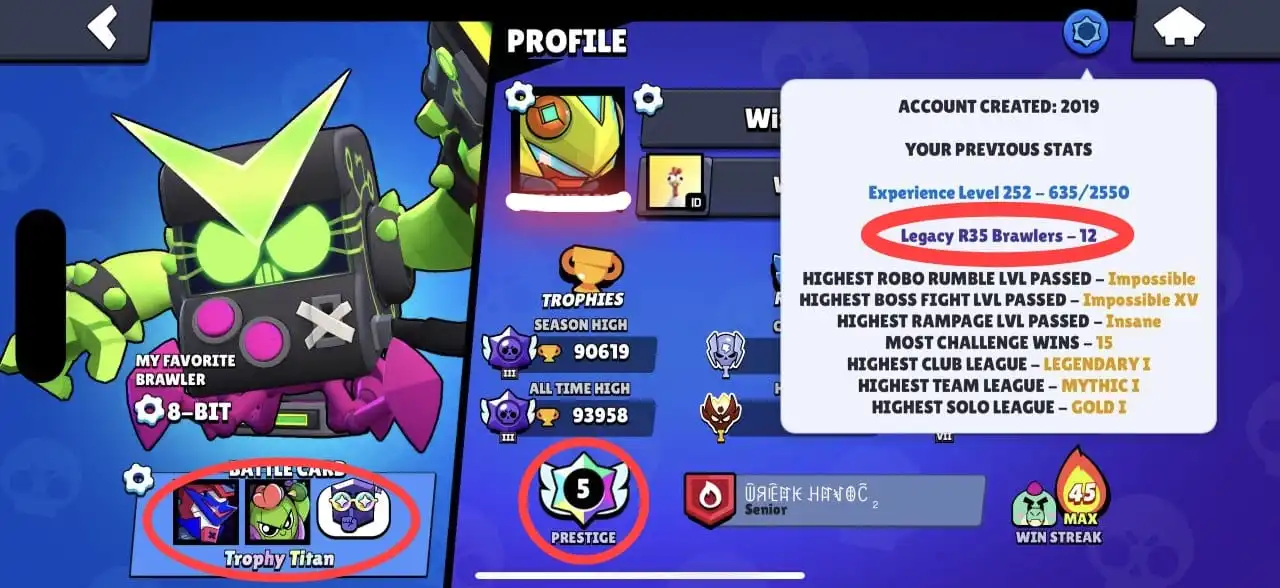 💥 12 x R35 💥 93,958 TROPHY TITAN 💥 VIRUS 8-BIT 💥 95/95 BRAWLERS 💥 74 MAXED BRAWLERS 💥 390 SKINS 💥 XP 252 💥 FULL MAIL ACCESS 💥 93K 💥 HYPERCHARGED 47 💥 PRESTIGE 💥 MASTERS 2024 & 2025 💥