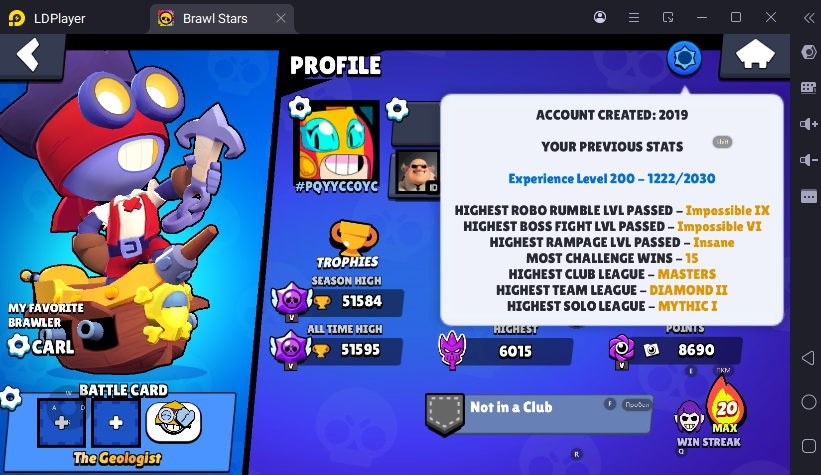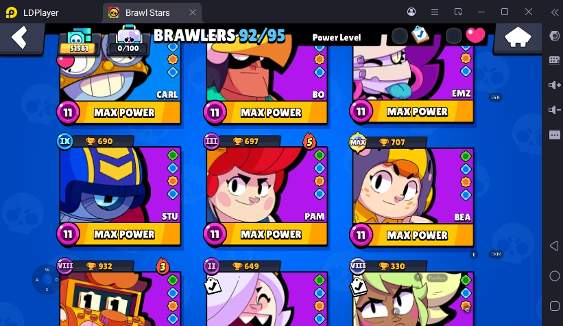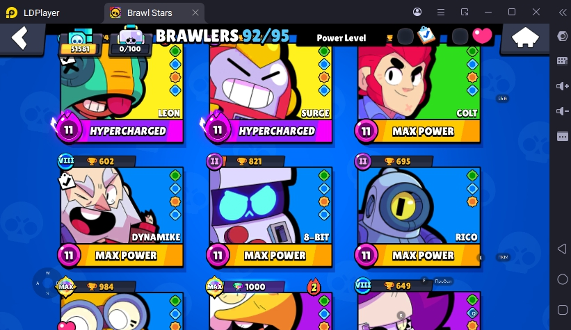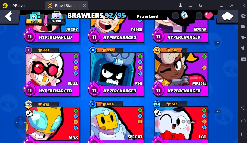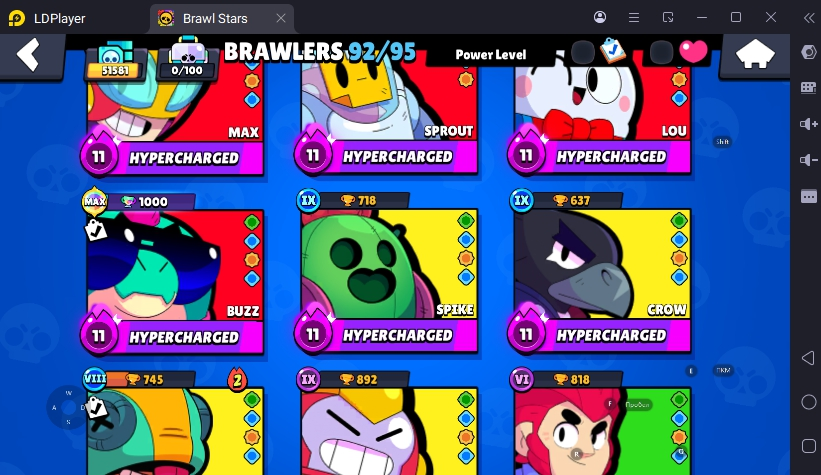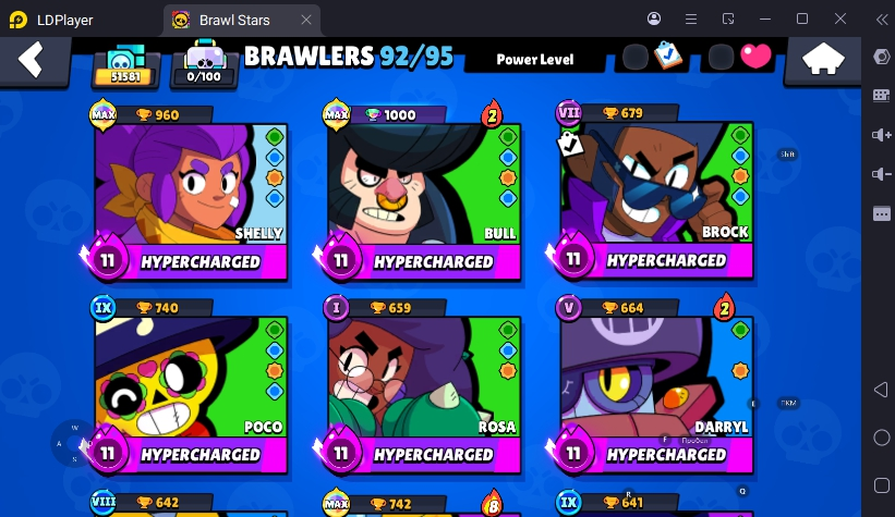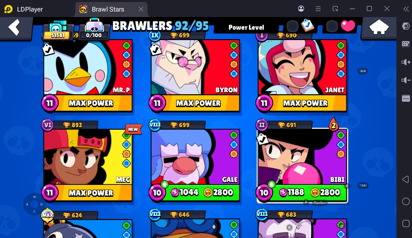 208 SKINS 💯 HEROINE BIBI 🧡 51.581 TROPHIES 🏆 92 BRAWLERS 🐼 20 HYPERCHARGED 🩸 40 MAX BRAWLERS 💛 KING LOU 🧡 WHITE WOLF LEON 🧡 NINJA ASH 🧡 CROWBONE 🧡 ANTIVIRUS 8-BIT 💯