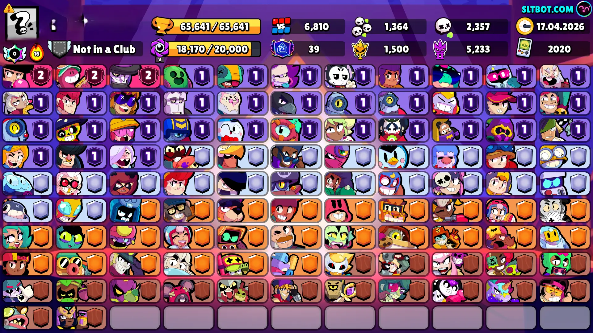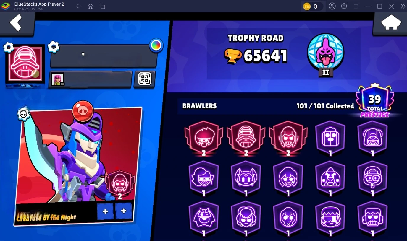 237 SKINS 💯 65.641 TROPHIES 🏆 101 BRAWLERS 🐼 21 HYPERCHARGED 🩸 39 PRESTIGE 💜 33 MAX BRAWLERS 💛 29 BUFFIES 🔑 BORN BAD BUZZ 🧡 VIRUS CHARLIE 🧡 HYPNOS SANDY 💯 50K 60K