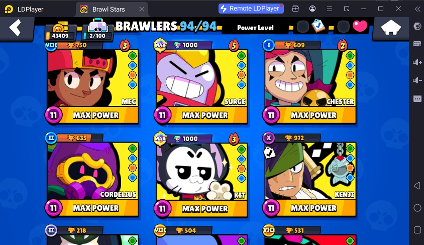 272 SKINS 💯 BELLE GOLDHAND ❤️ 43.409 CUPS 🏆 94 BRAWLERS 🐼 13 HYPERCHARGED 🩸 37 MAX BRAWLERS 💛 CURSED KENJI ❤️ BORN BAD BUZZ ❤️ FURIOUS FANG ❤️ MAJOR ROSA ❤️ TRICKY JANET 💯