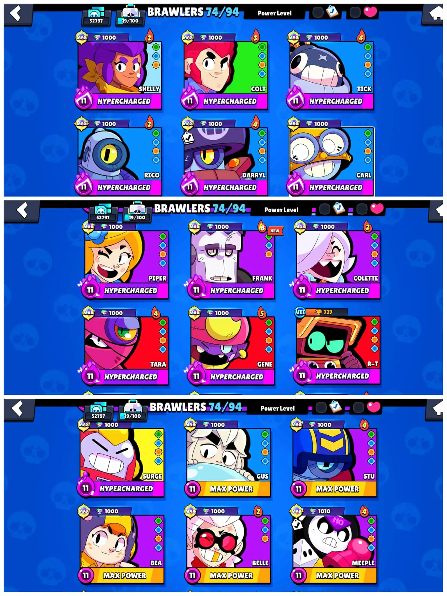 74 BRAWLER🔥52,797+ TROPHY🏆21 MAX BRAWL🔥13 HYPERCHARGED💠25 Win Streak✨207+ Skin💠Lots Of Brawl 1,000+ Trophy Mission Complete🌟True Silver Tick🌟Rare Stellar Shelly Skin💙Lots of Rare Skin💙Android And Ios•Full Access✅INSTANT DELIVERY✅