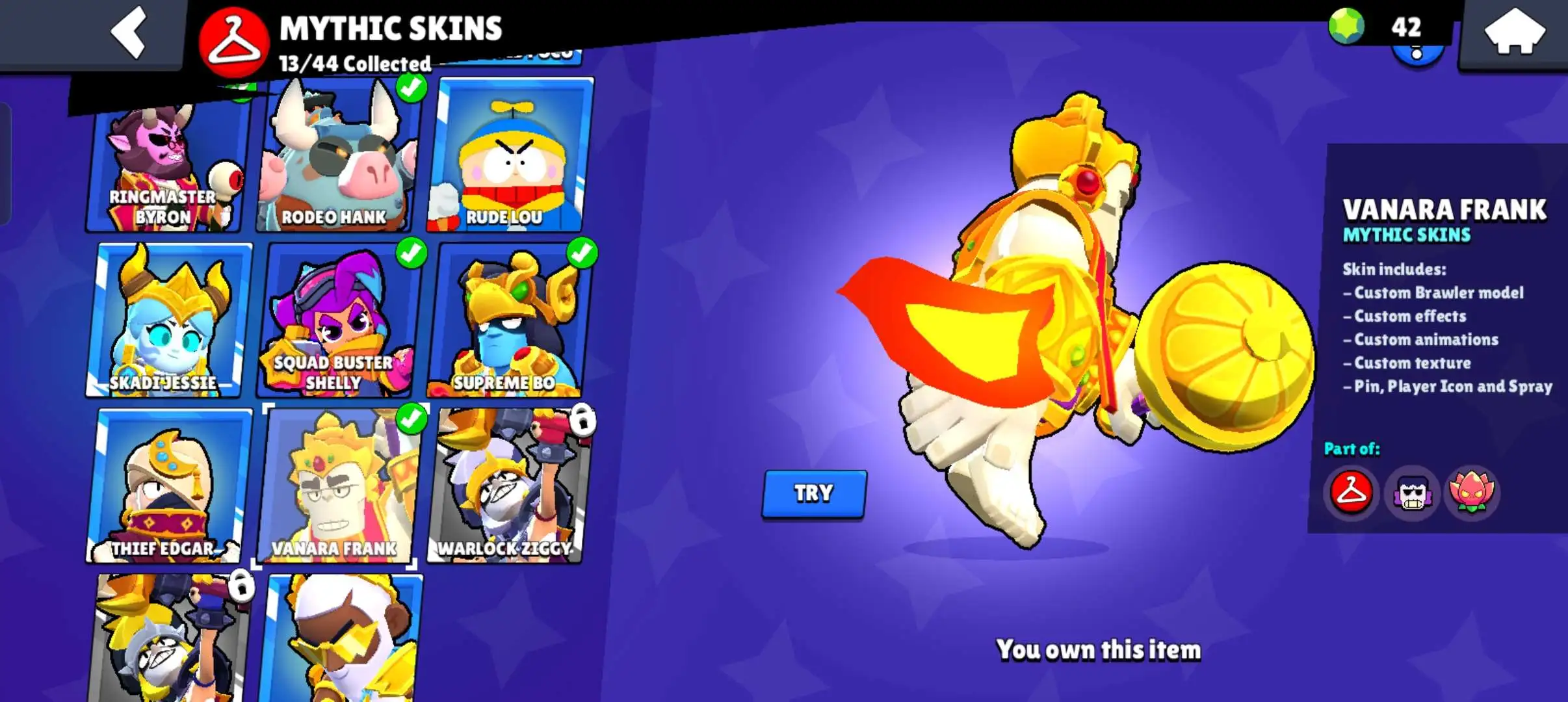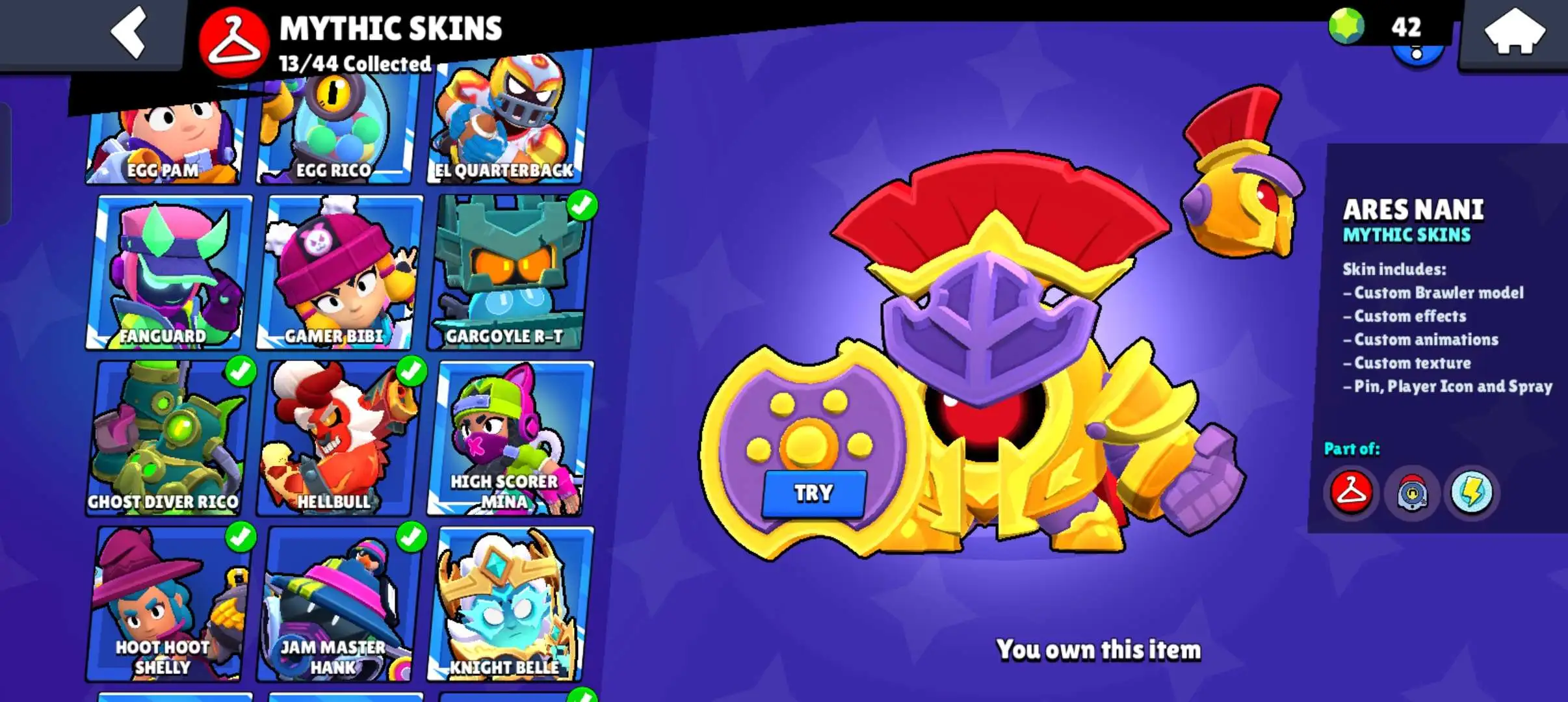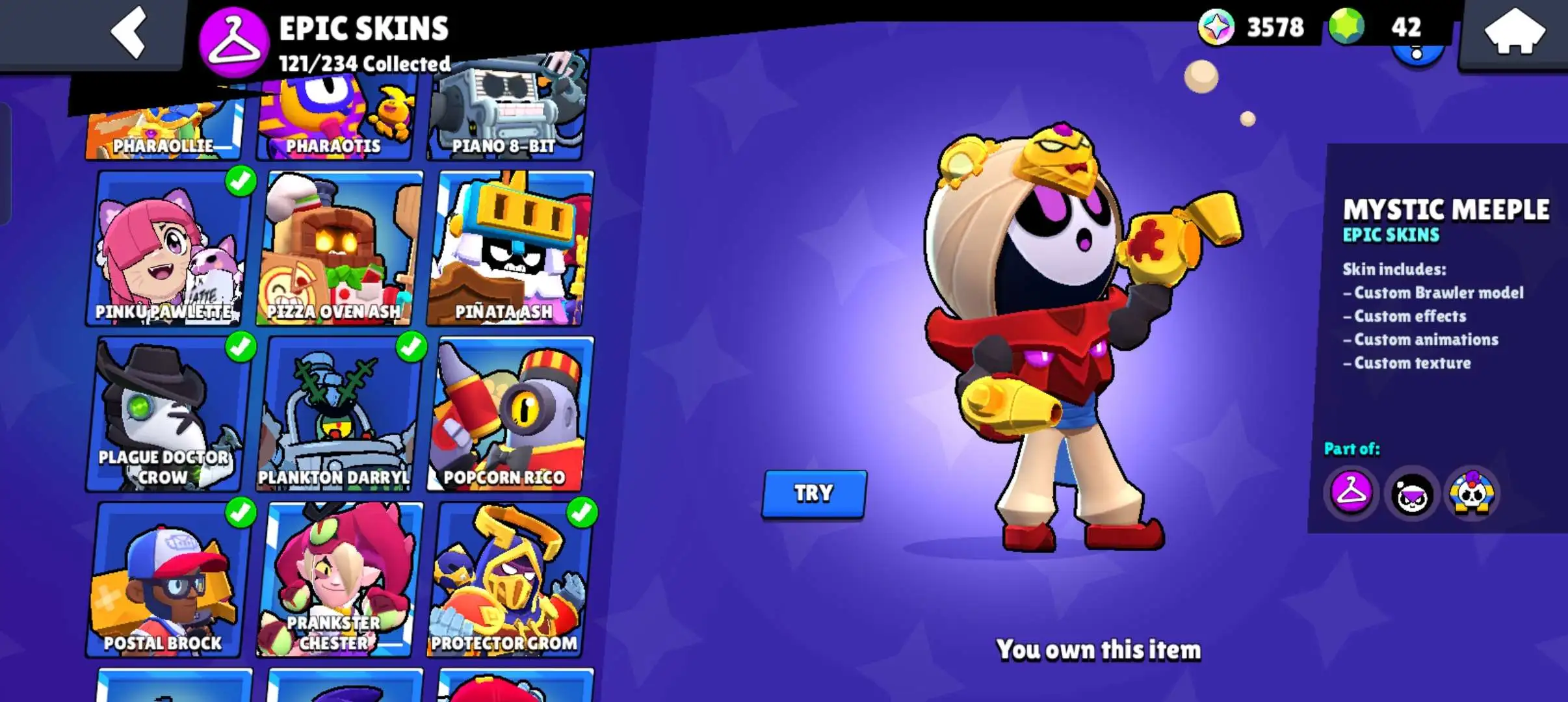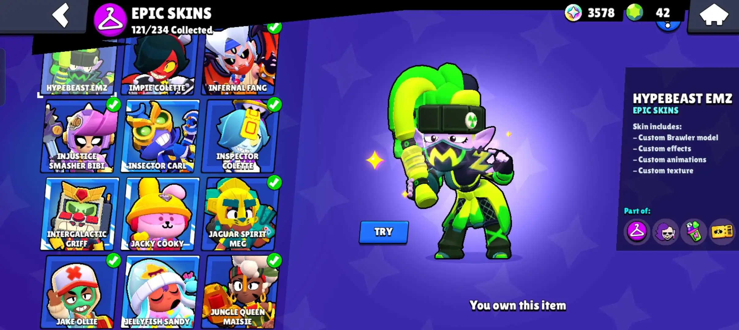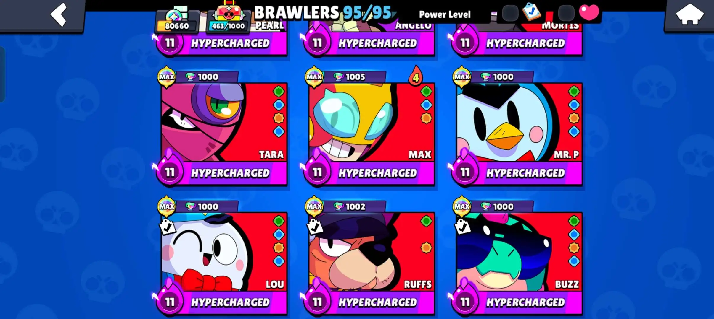 80k 🏆 3 time masters 🔥 1 prestige 🔥9 brawl pass plus 🔥16 Legendry skins 🔥 max (63) ✅ 330 skins ✅ 57 hypercharges ✨