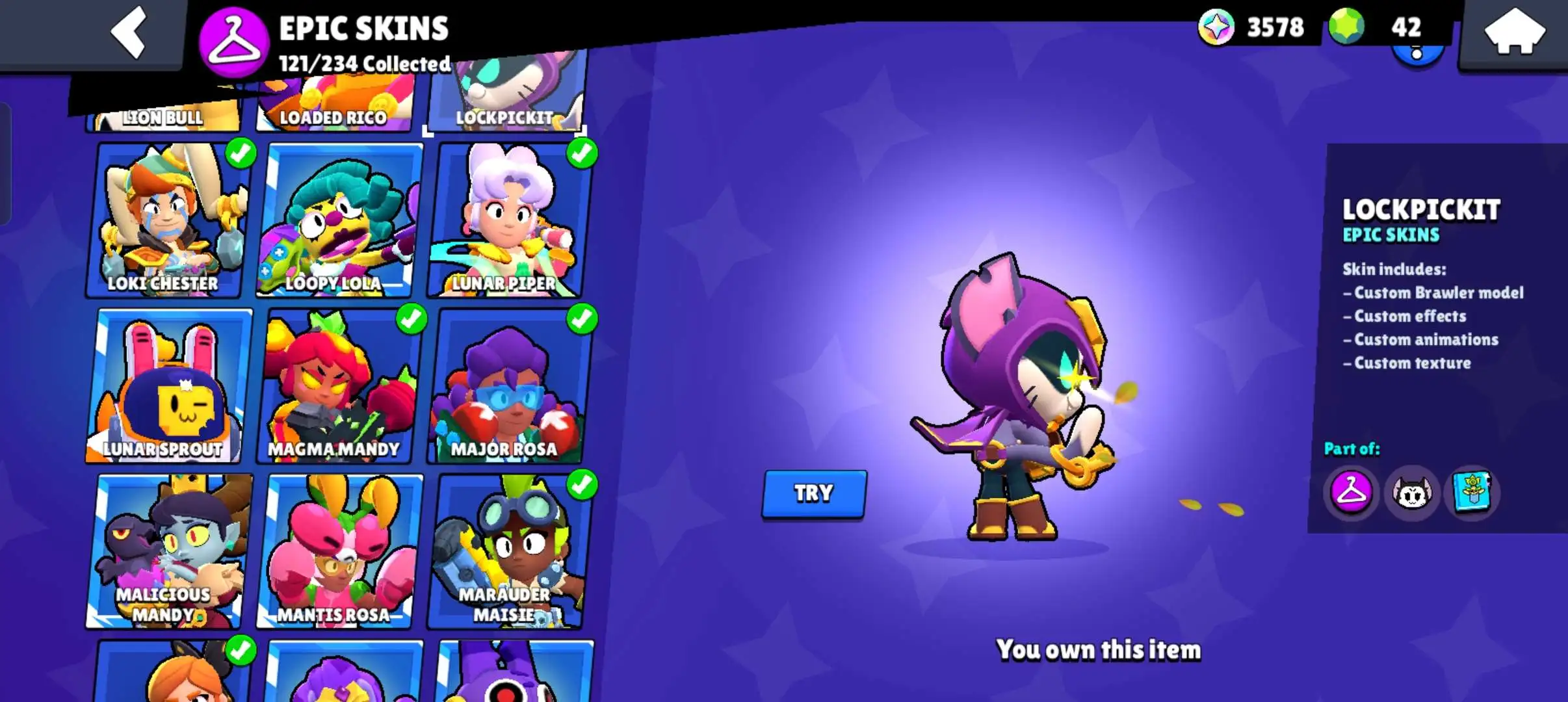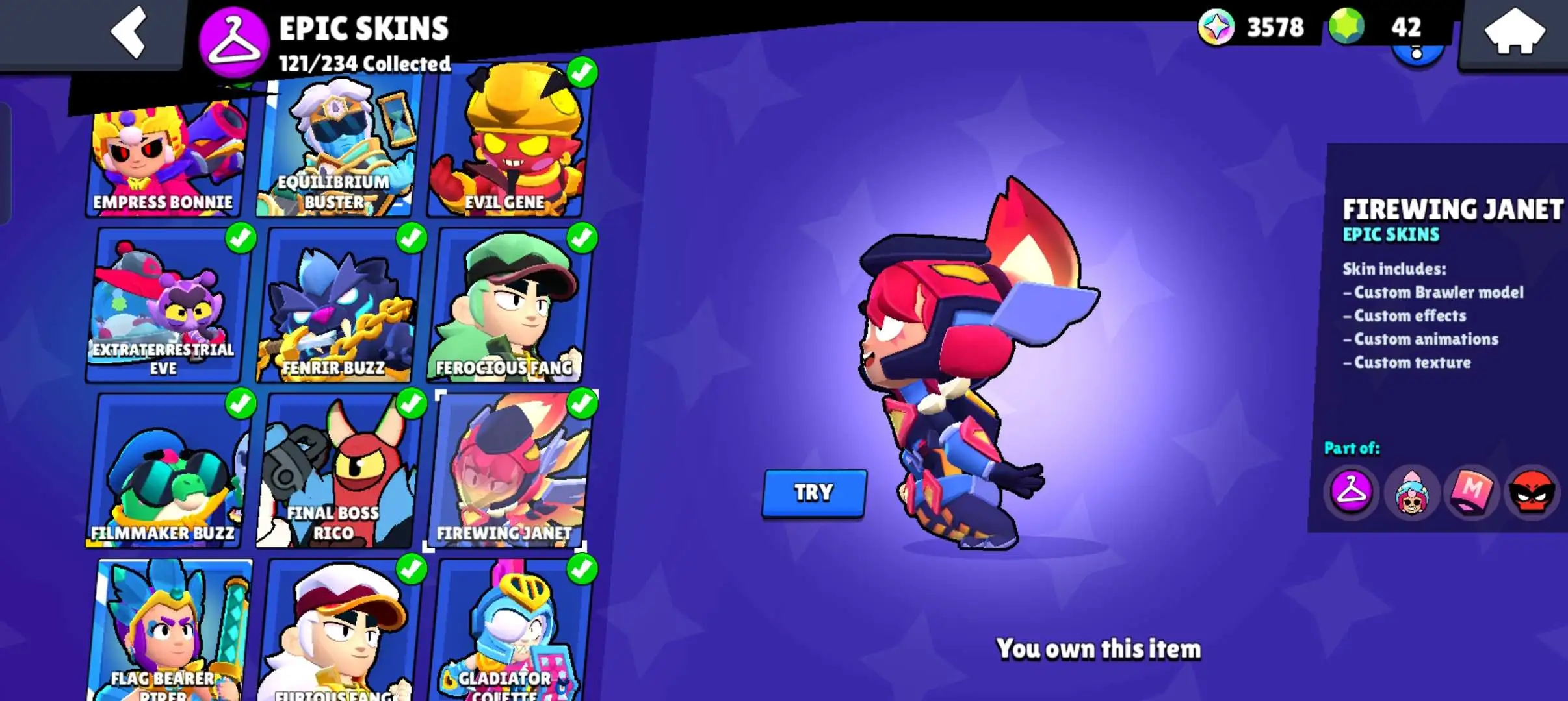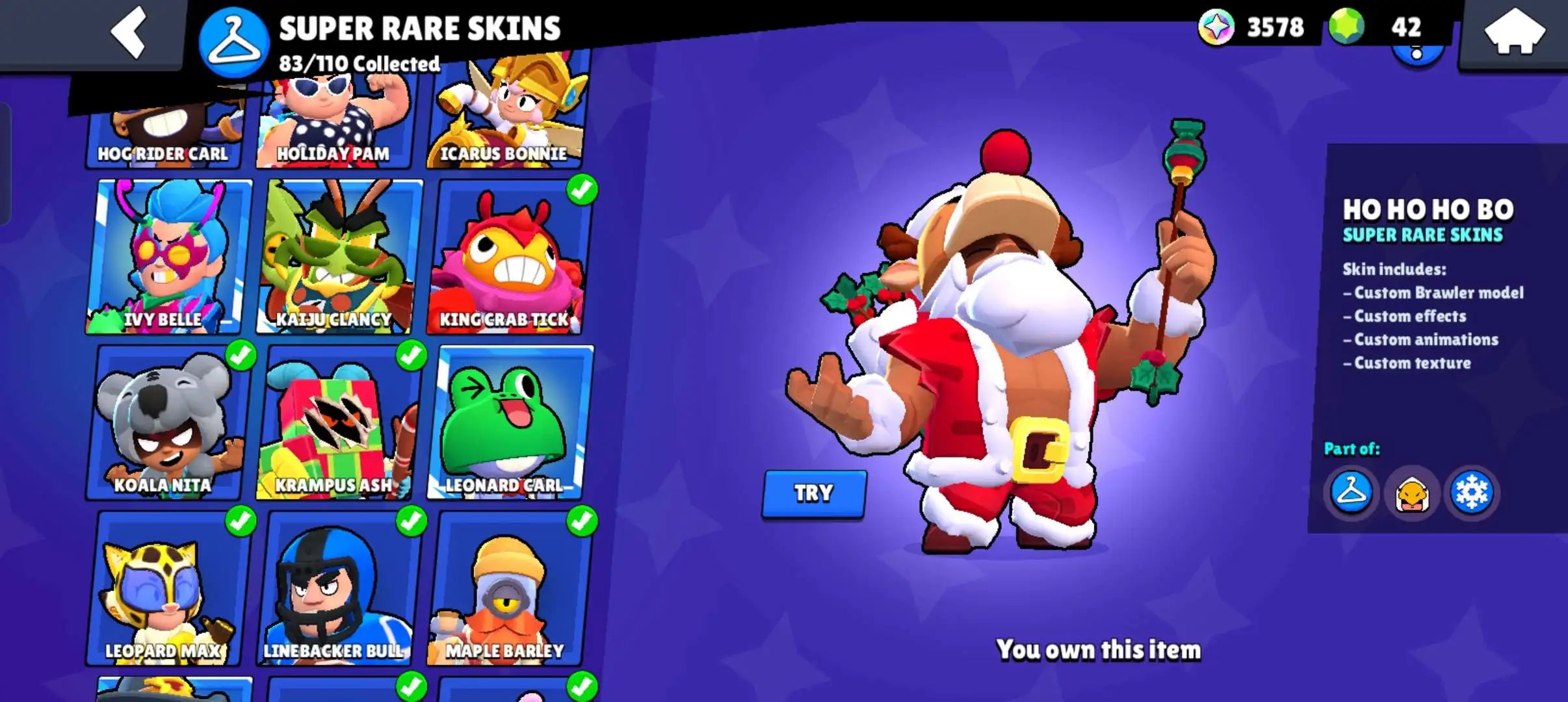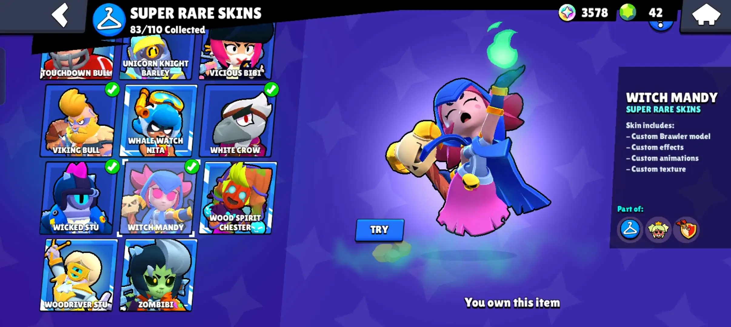 80k 🏆 3 time masters 🔥 1 prestige 🔥9 brawl pass plus 🔥16 Legendry skins 🔥 max (63) ✅ 330 skins ✅ 57 hypercharges ✨