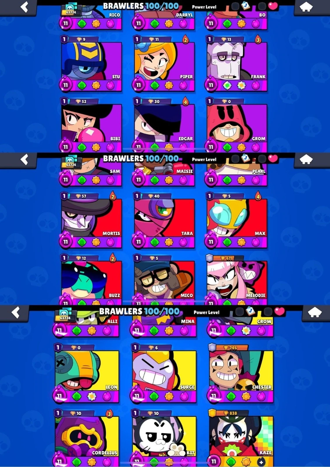 Brawl Stars⚡63K+ Trophies ⚡320 Skins ⚡ 35 Hypercharge ⚡ 100 Brawlers