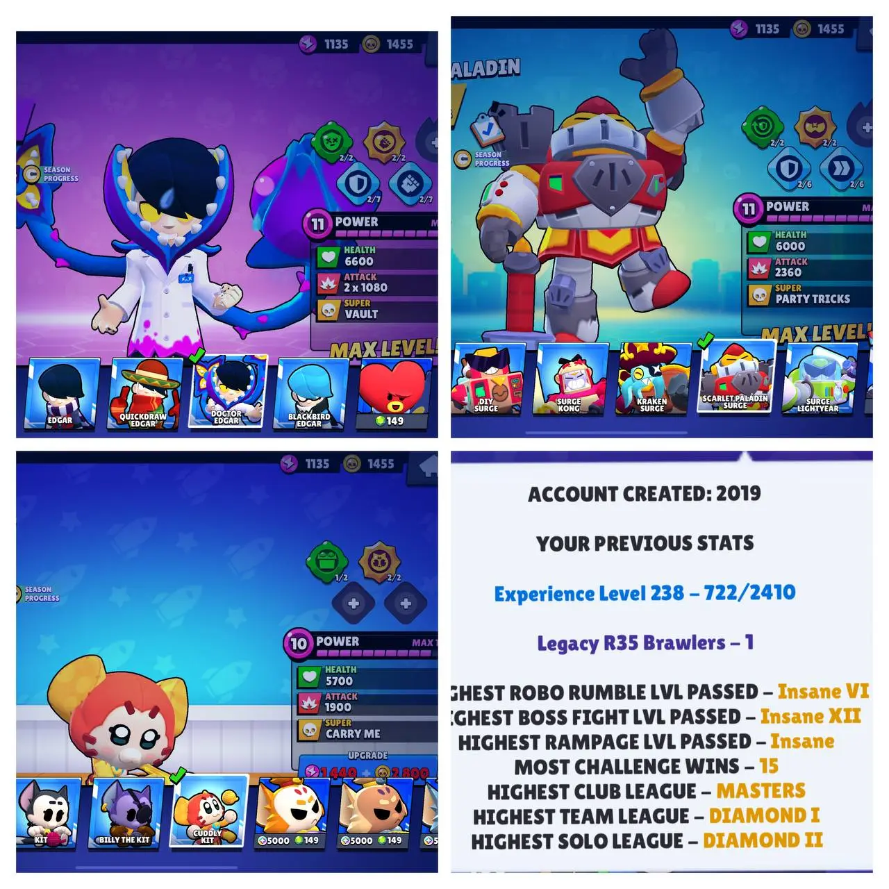 💎RANK 35 PIN 💎TROPHY 89036 [] BRAWLER 90 [] MAXED 50 [] HYPER 24 [] SKINS- 228 [] GEMS 53 [] INSTANT