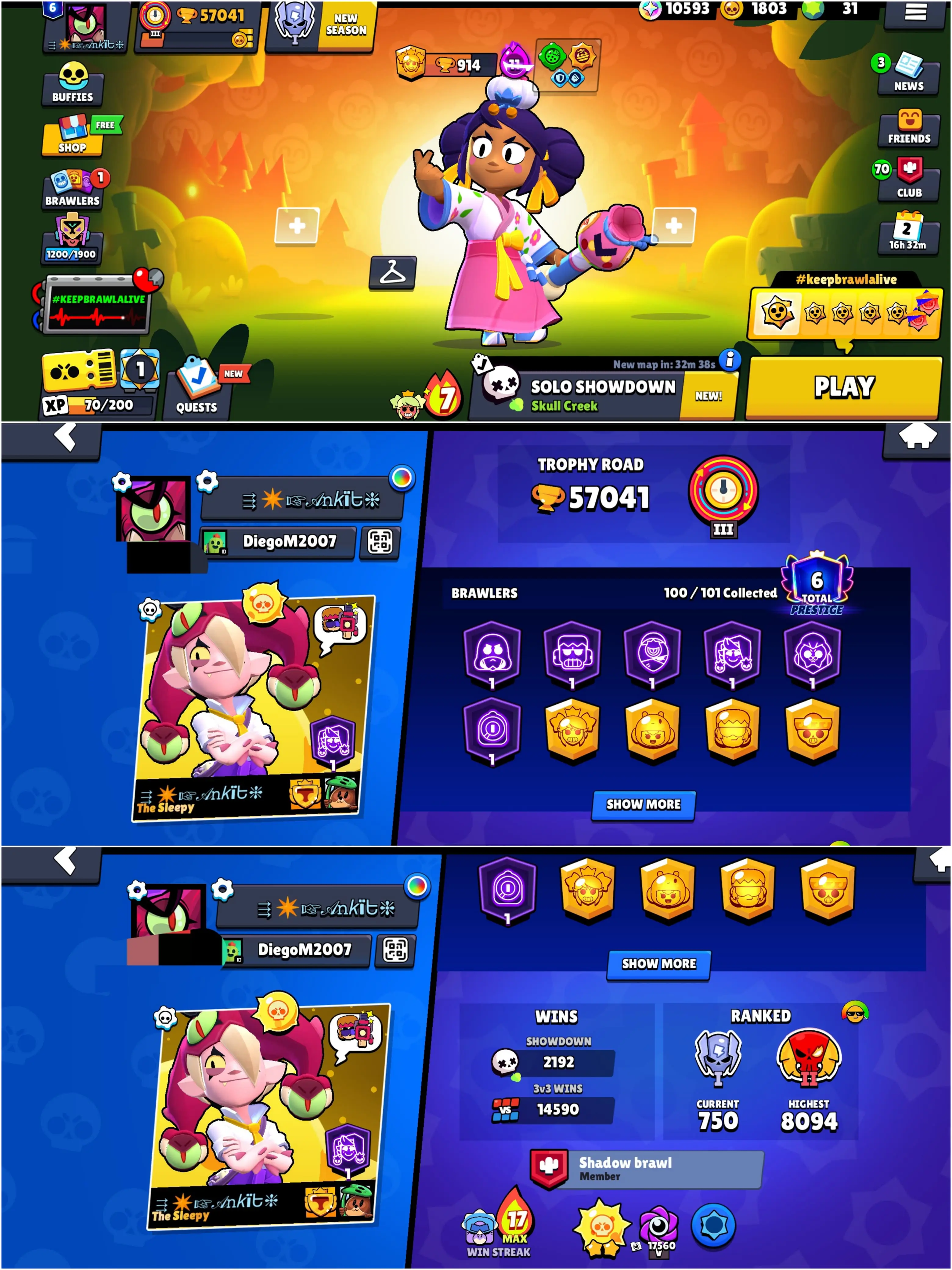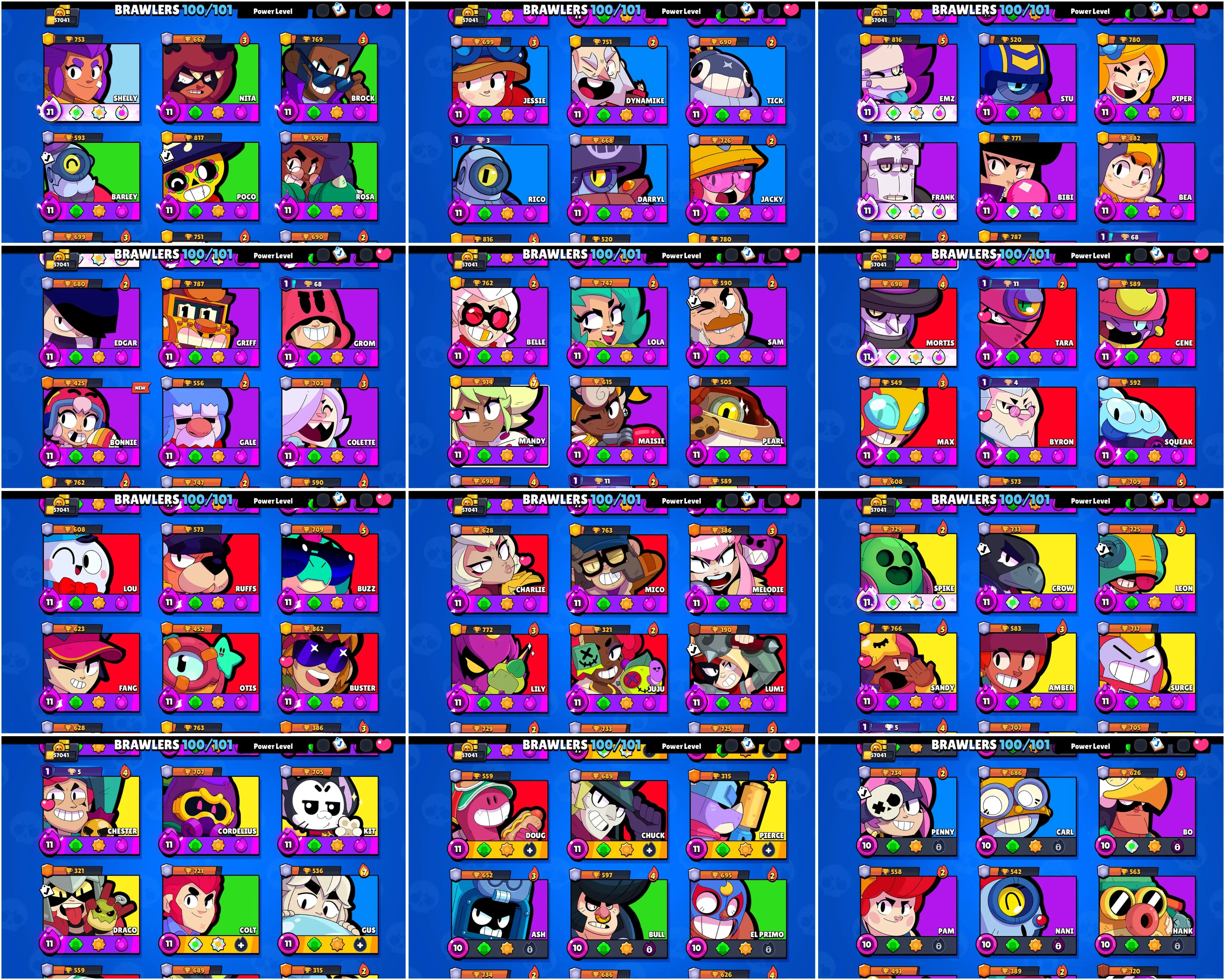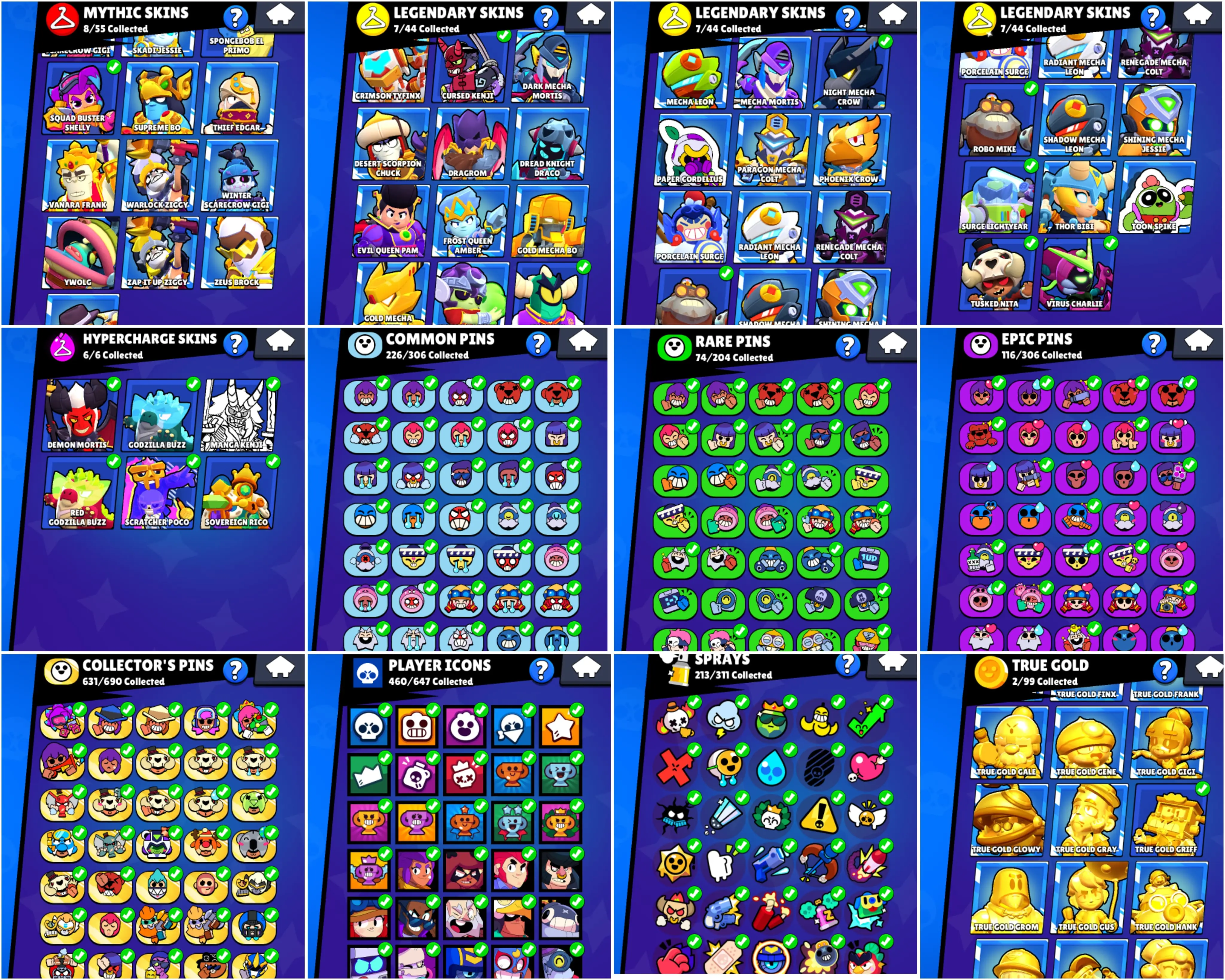 SOLAR FAME, BS 57k TROPHY, 100/101 BRAWLERS UNLOCKED,58 HYPERCHARGED, 5 MAXED BRAWLERS, 347 OP SKINS [8 MYTHIC + 7 LEGENDARY + 6 HYPERCHARGED] , 1047 PINS, 460 PLAYER ICON AND 213 SPRAYS | H373