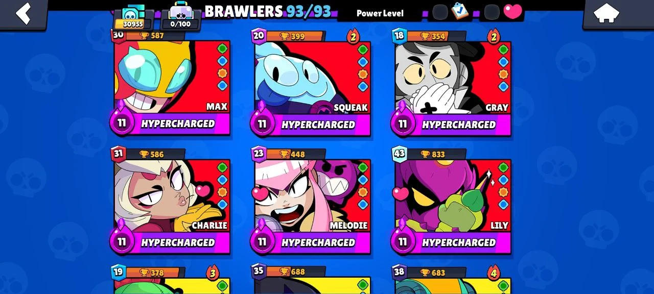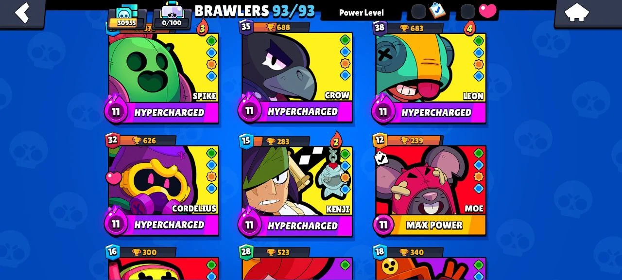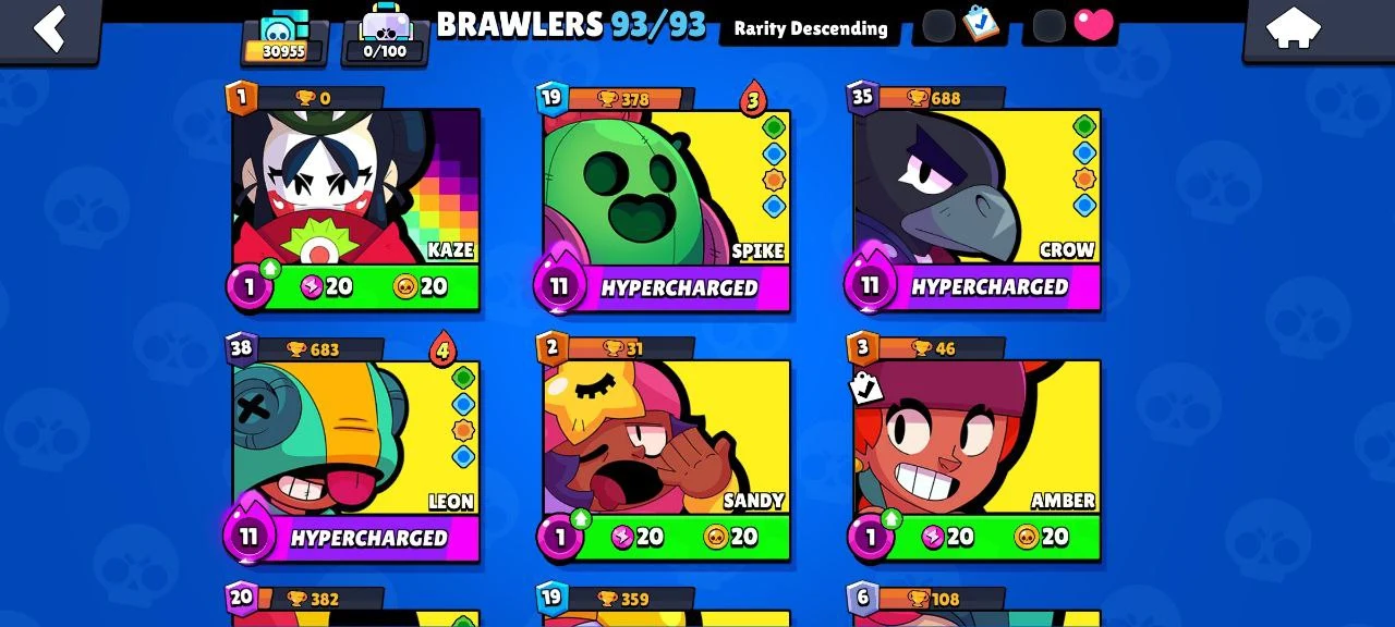 VIRUS CHARLIE, PHOENIX CROW, EVIL QUEEN PAM, ANTIVIRUS 8BIT✨ 30,955 TROPHY ACC ❤️ 5+ LEGENDARY (CROW, SANDY, AMBER, LEON, SPIKE) 💥 93/93 BRAWLERS ✨ 29 HYPERCHARGED 🔥 2 MAX 💫 1 ULTRA LEGENDARY (KAZE) 🎊 191 OG SKINS