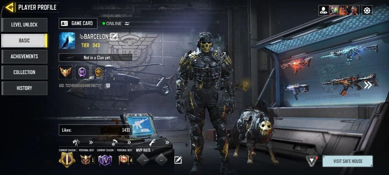 iOS Android 🎮 Level 343 🛍️ Rank Master💯 4 Mytich 🏹 5 Legendery ⸱ Ghost 🌹 128 Epic 🥶 Code1050