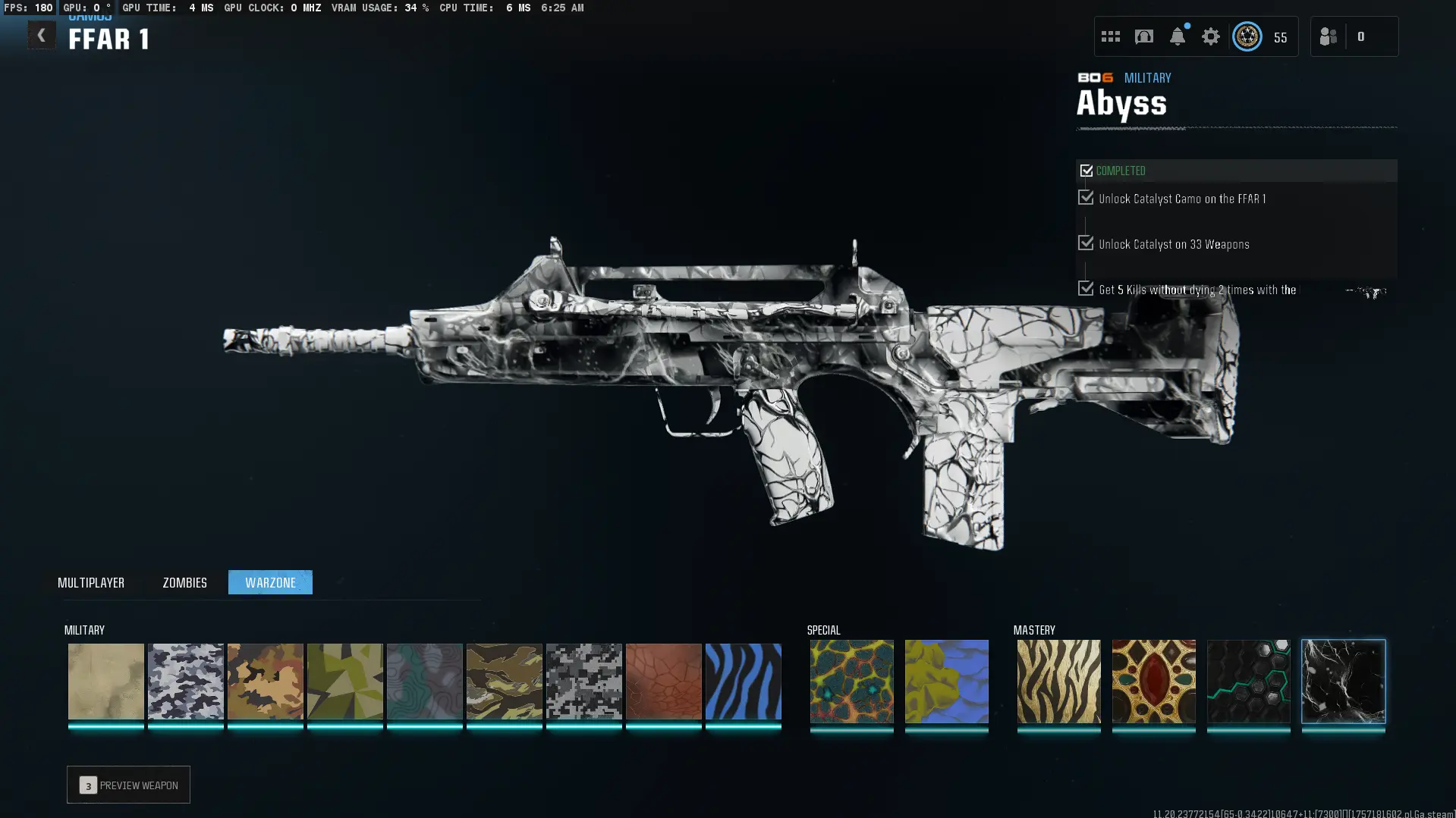 ✨ BO6 WZ4✨【 Abyss 33 Guns + Level 55 】✅ All Multiplayer Camos ✨ Abyss Legit Unlock On All 33 BO6 Guns 🔗 Linkable to Steam / BNet / Xbox / PSN✨