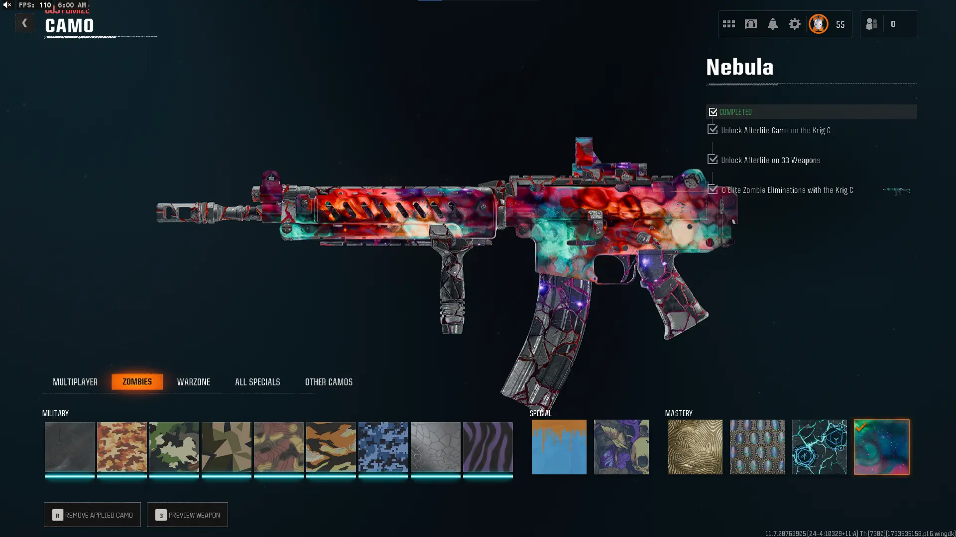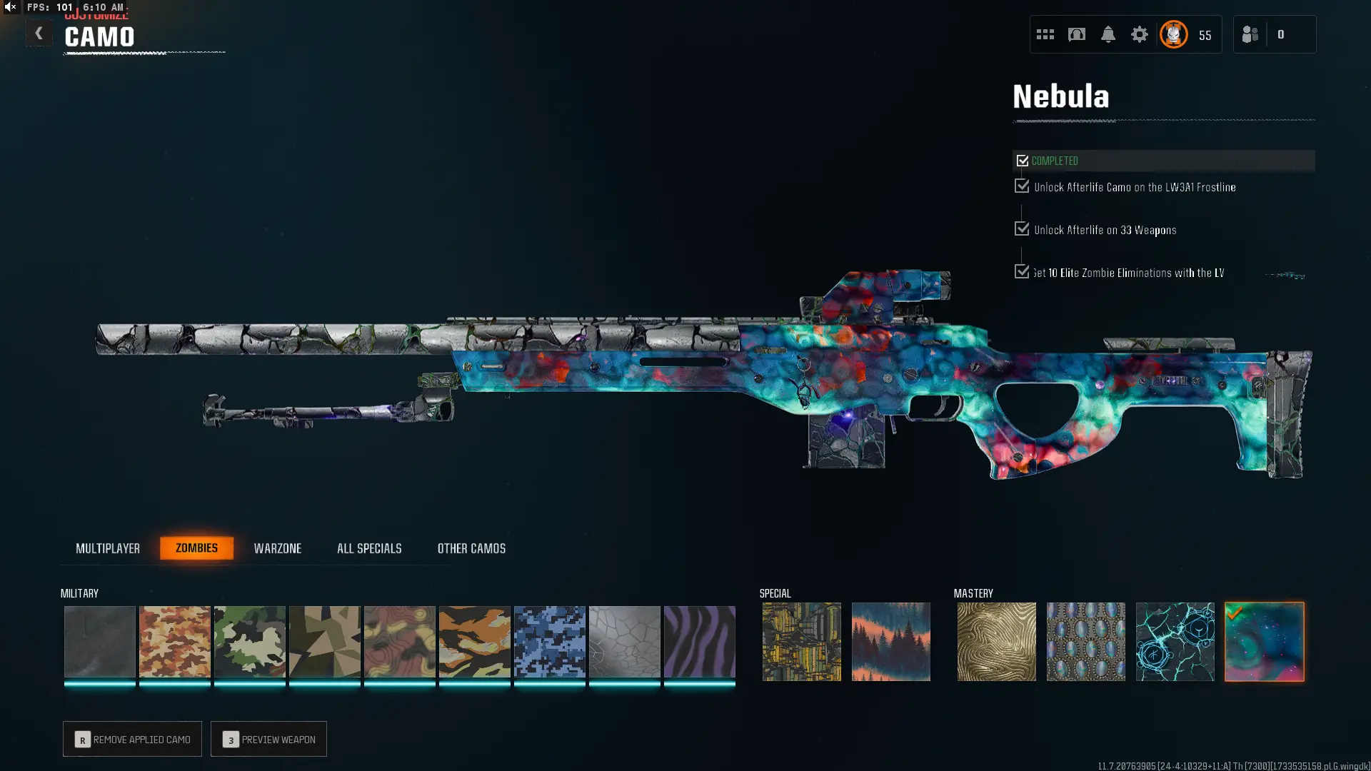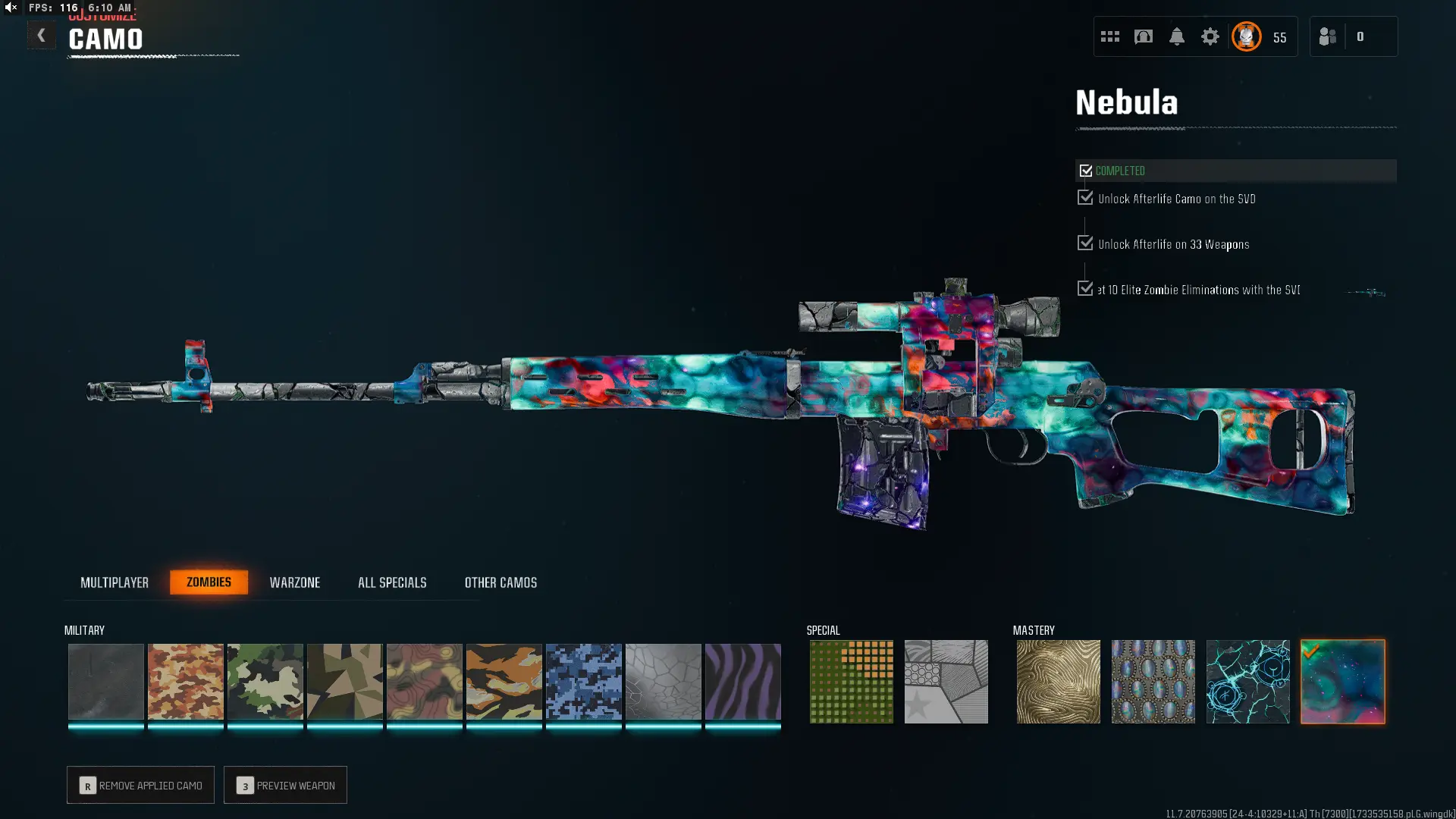 【📈 BO6 / WZ4 📈】 ✔ Nebula Hard Unlocked ✅ Prestige 6 ⚔ All 525 Zombies Camos Unlocked ✔ Nebula Legit Unlocked on 33 Black Ops 6 Guns 🛑 Lots of Guns Maxed ☄ Linkable to STEAM / BNET / XBOX / PSN #ZB54FDSFA