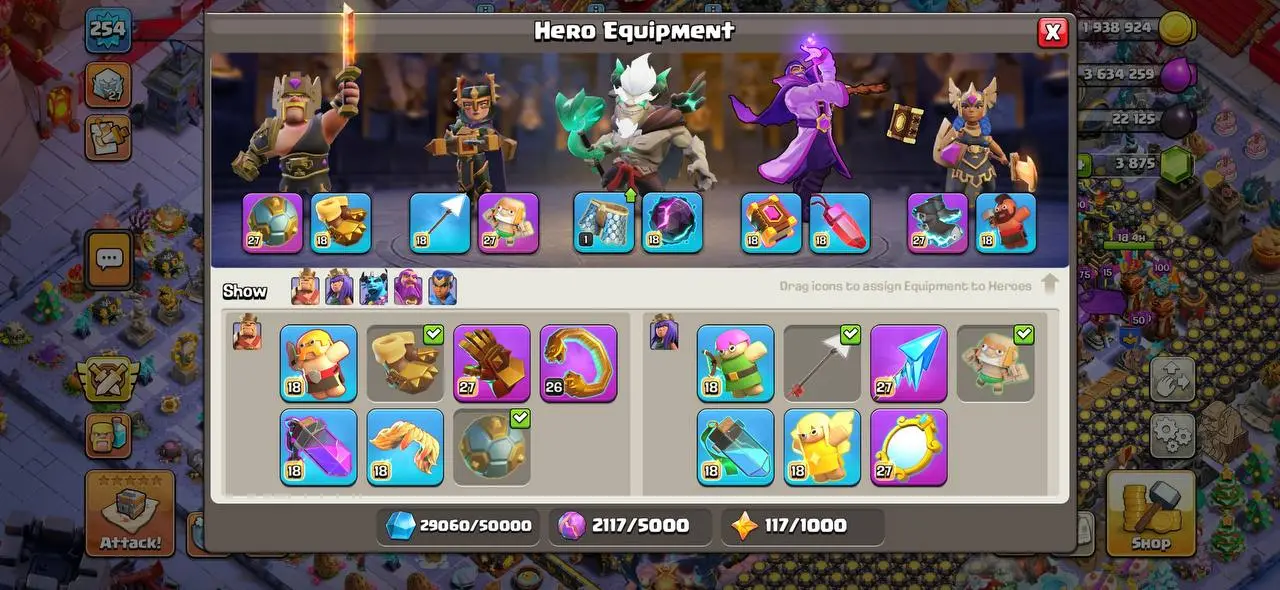 A86🔥Rarest 2012 to 2026 all obstacles till date🔥Th17 max🔥143 skins 48 scenery 123/136 statues🔥13 years of obstacles and collection more than 300 plus🔥2 Leauge skins with war arena too🔥Collective and most rare in entire web🔥