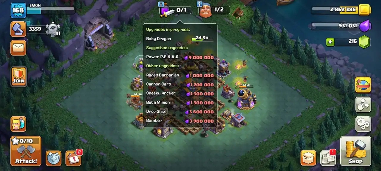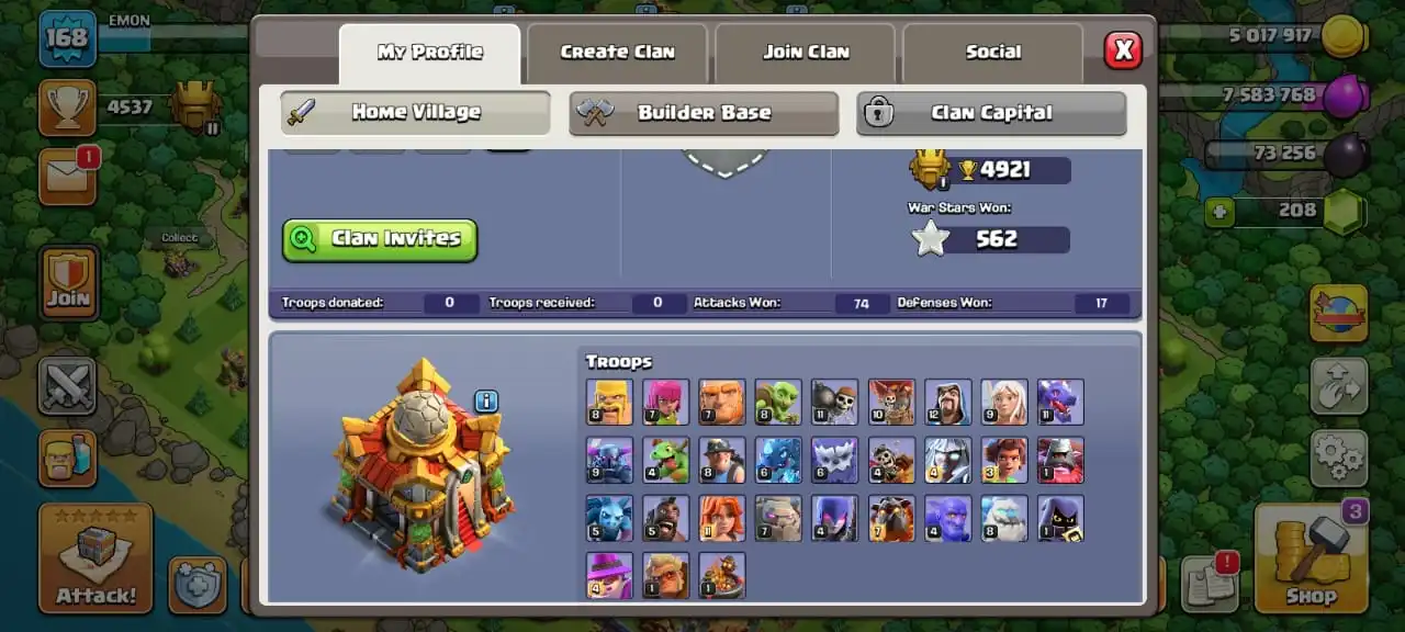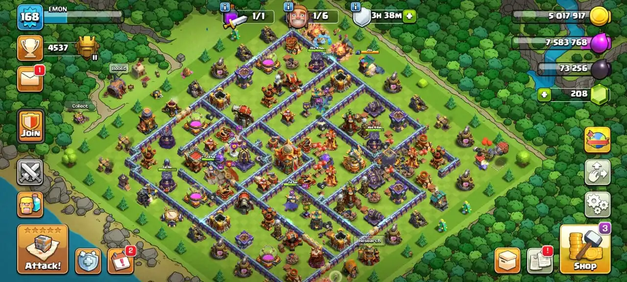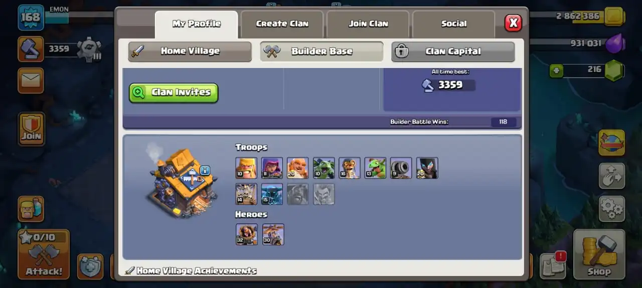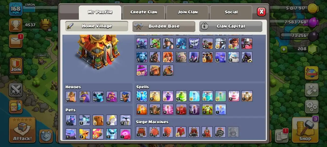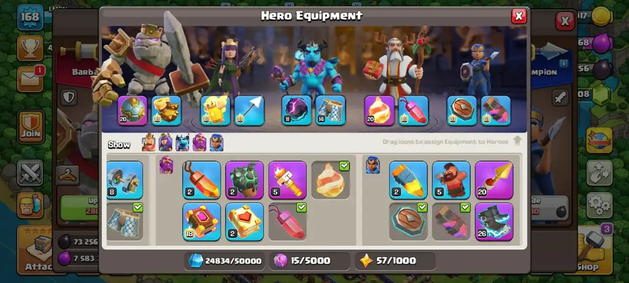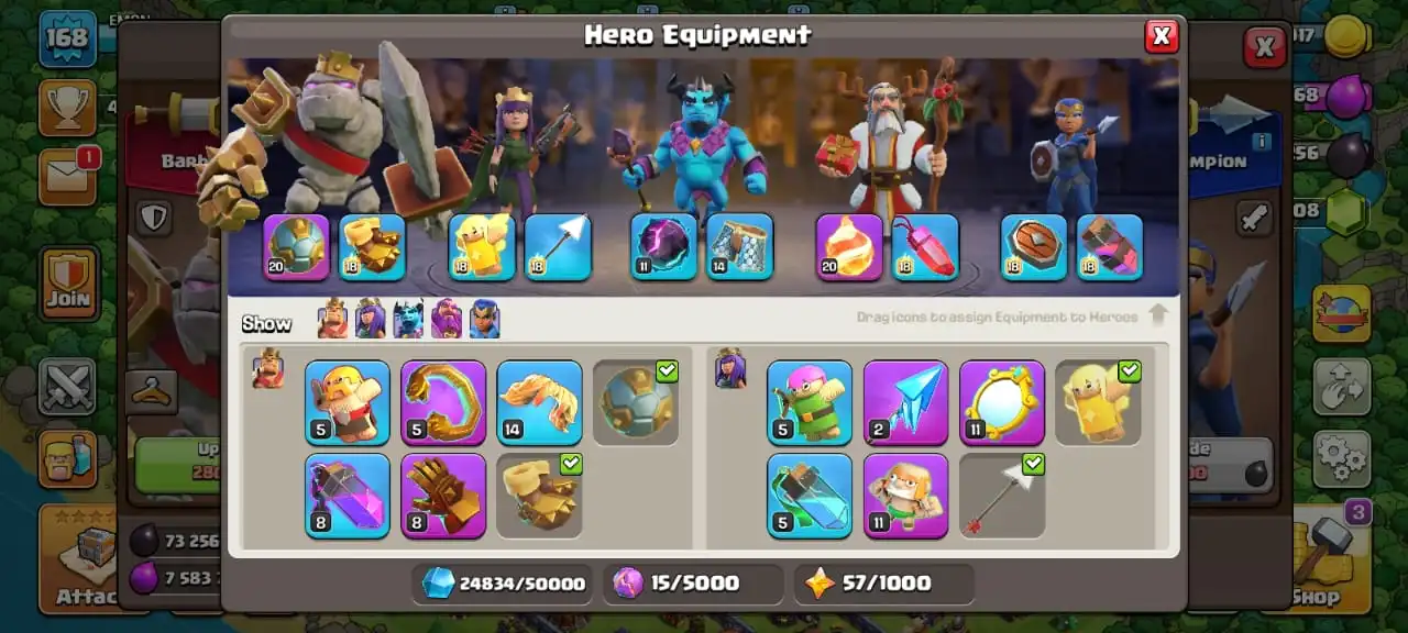 Cheap🔥TH 16 almost max🔥high heroes level 89/93/60/70/45☠️11 heroes skin⚒️6 builder’s⚒️max builder’s apprentice✅free name change
