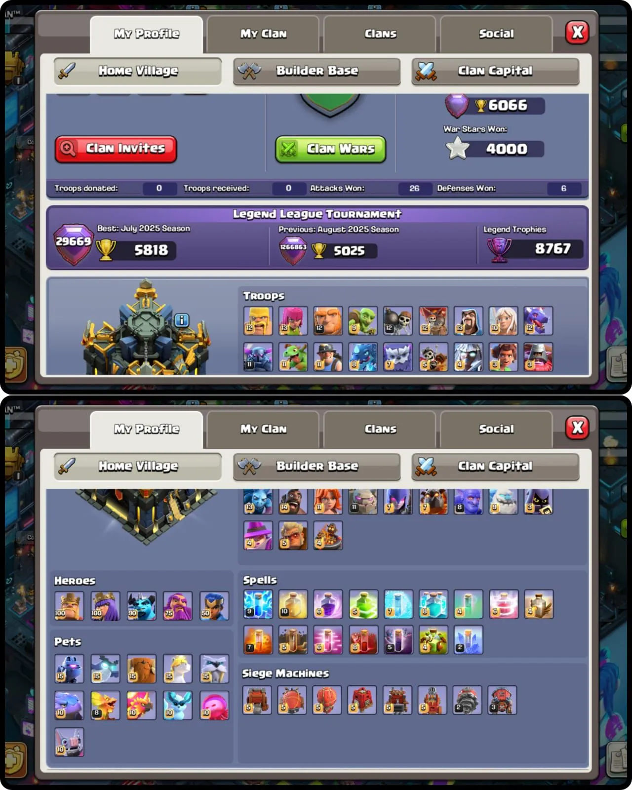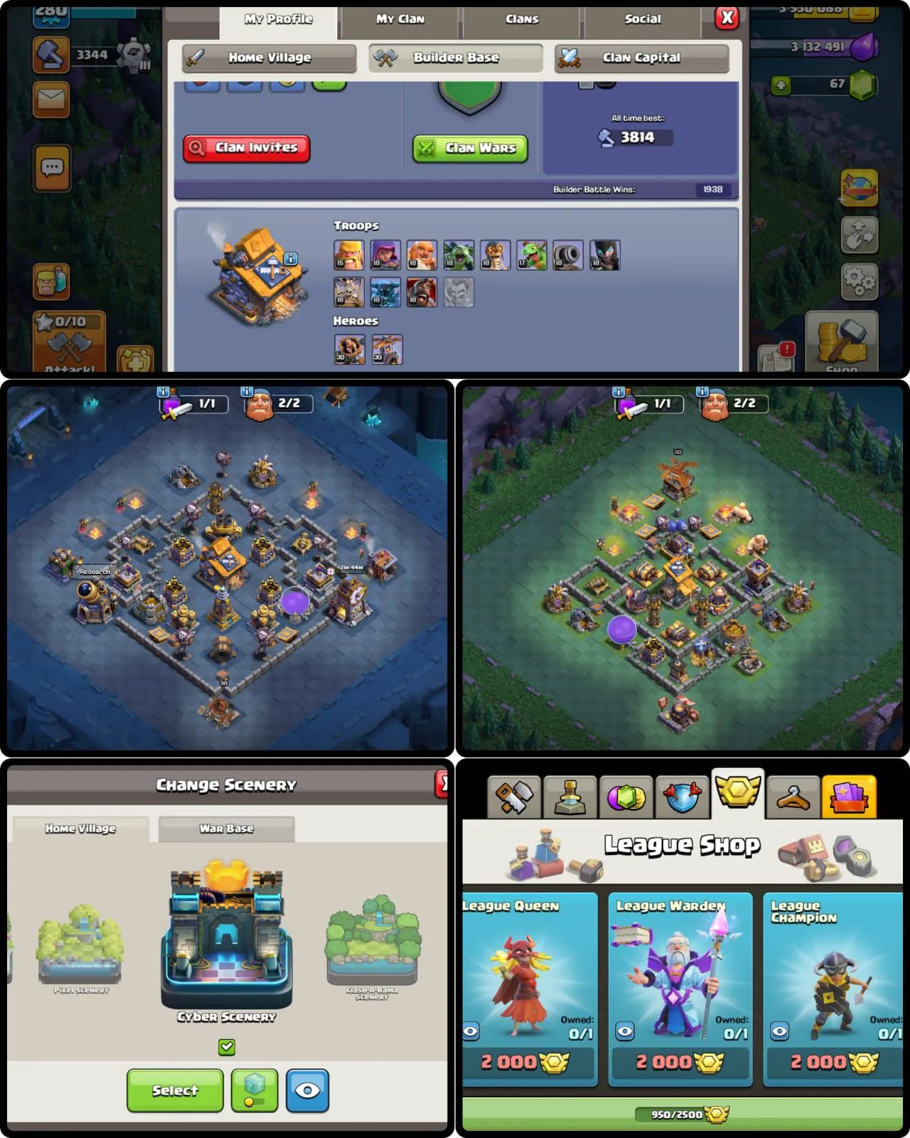 CYBER SCENERY | MAXED 5 EPIC EQUIPMENTS, ALL 5 HEROES AND WALLS TH17 MAX HIGH XP 280 || SC ID CHANGE AVAILABLE
