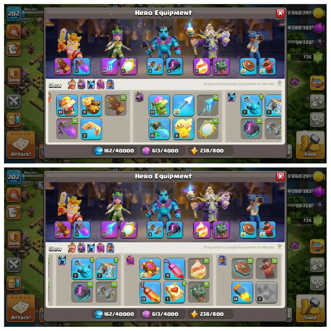 { !!! EXTREMELY RARE !!! } TH 14 MAX ACCOUNT || XP 202 || 12 HERO SKINS [ 5 LEGENDARY ] || 5 EPIC EQUIPMENTS || NC 1000 GEMS || BH LVL 10 || IOS & ANDROID || INSTANT DELIVERY