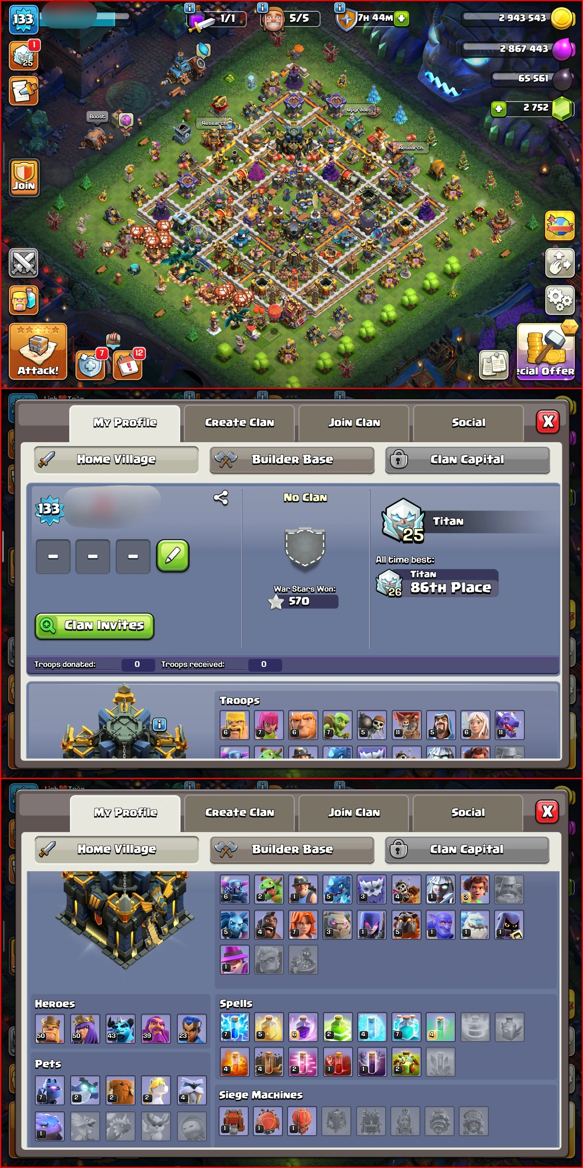 HUGE TH17 DONATION I'D w/ TIGER MOUNTAIN SCENERY | Heavy Troops & Defenses | 50/50/43/39/23 | 2.7K+ Gems & Nice Abilities | 1.5K NC | RB424