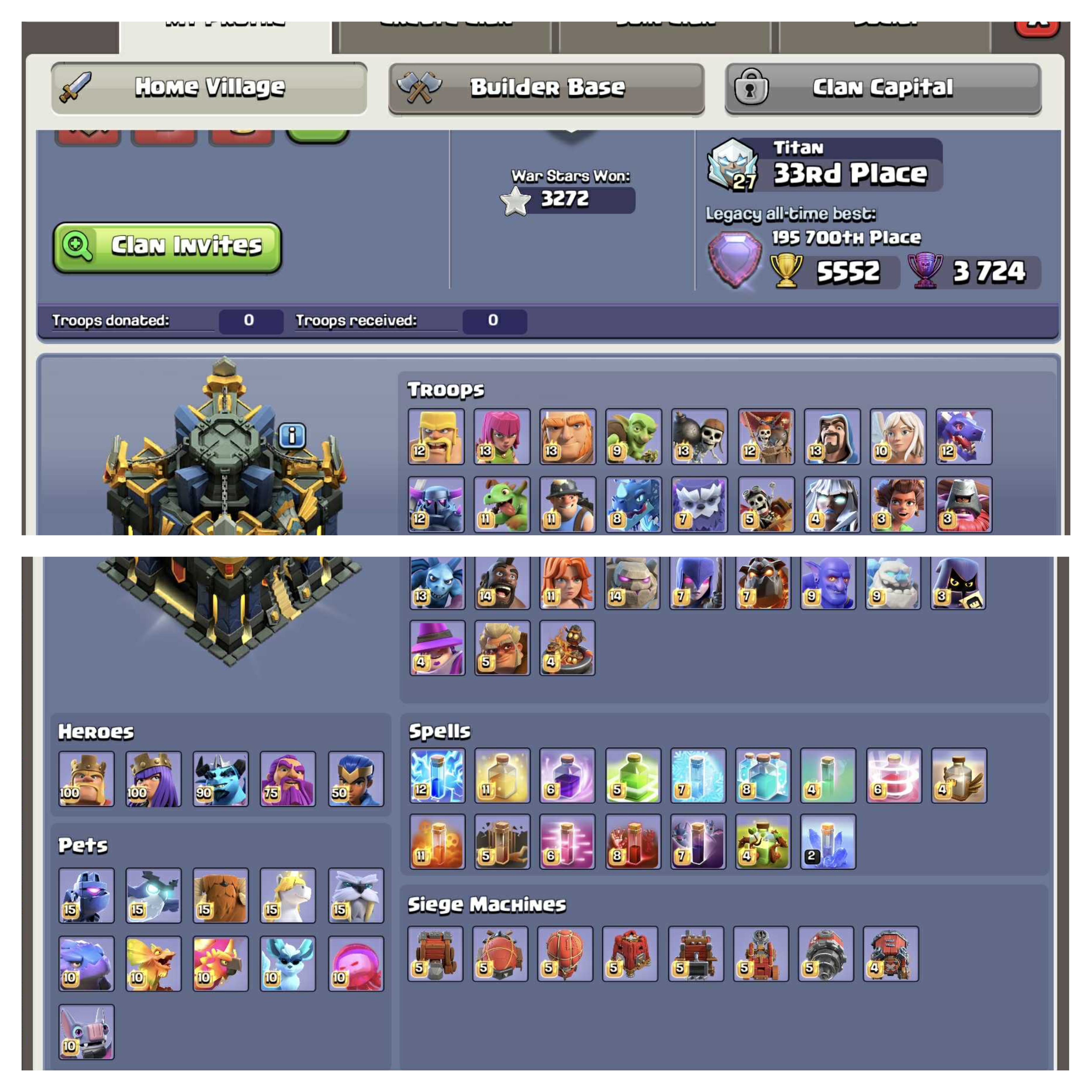 Level 248🌷TH 17 Max🌷Profile Max🌷3 Epic Equipments Max🌷Builder Base Max