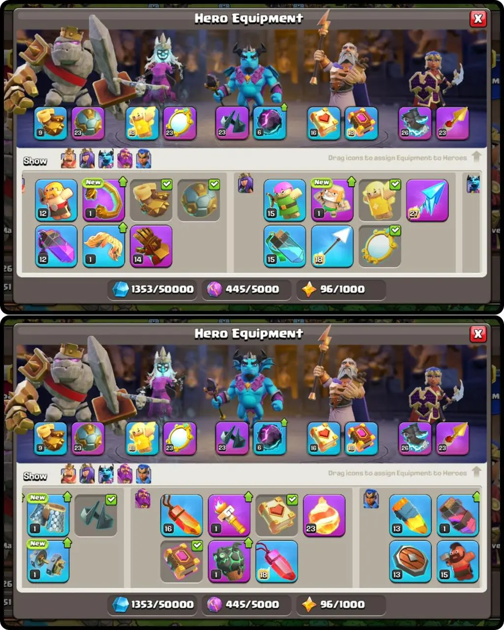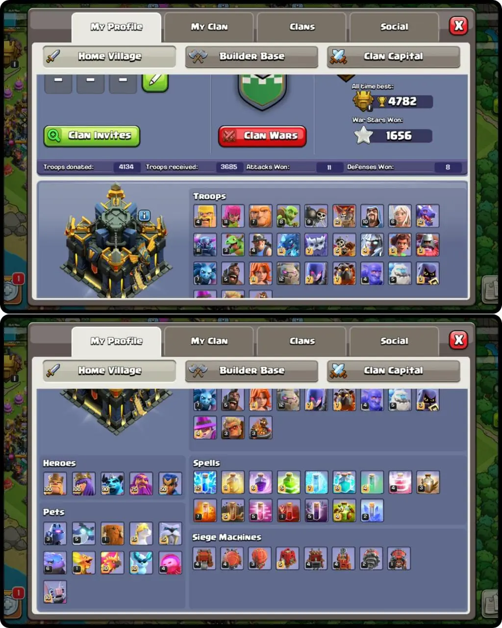 LOADED 10,000 GEMS, 1497 CWL MEDALS, 12/12 EPICS, ALL 5 HEROES, WALLS MAX TH17 XP 206