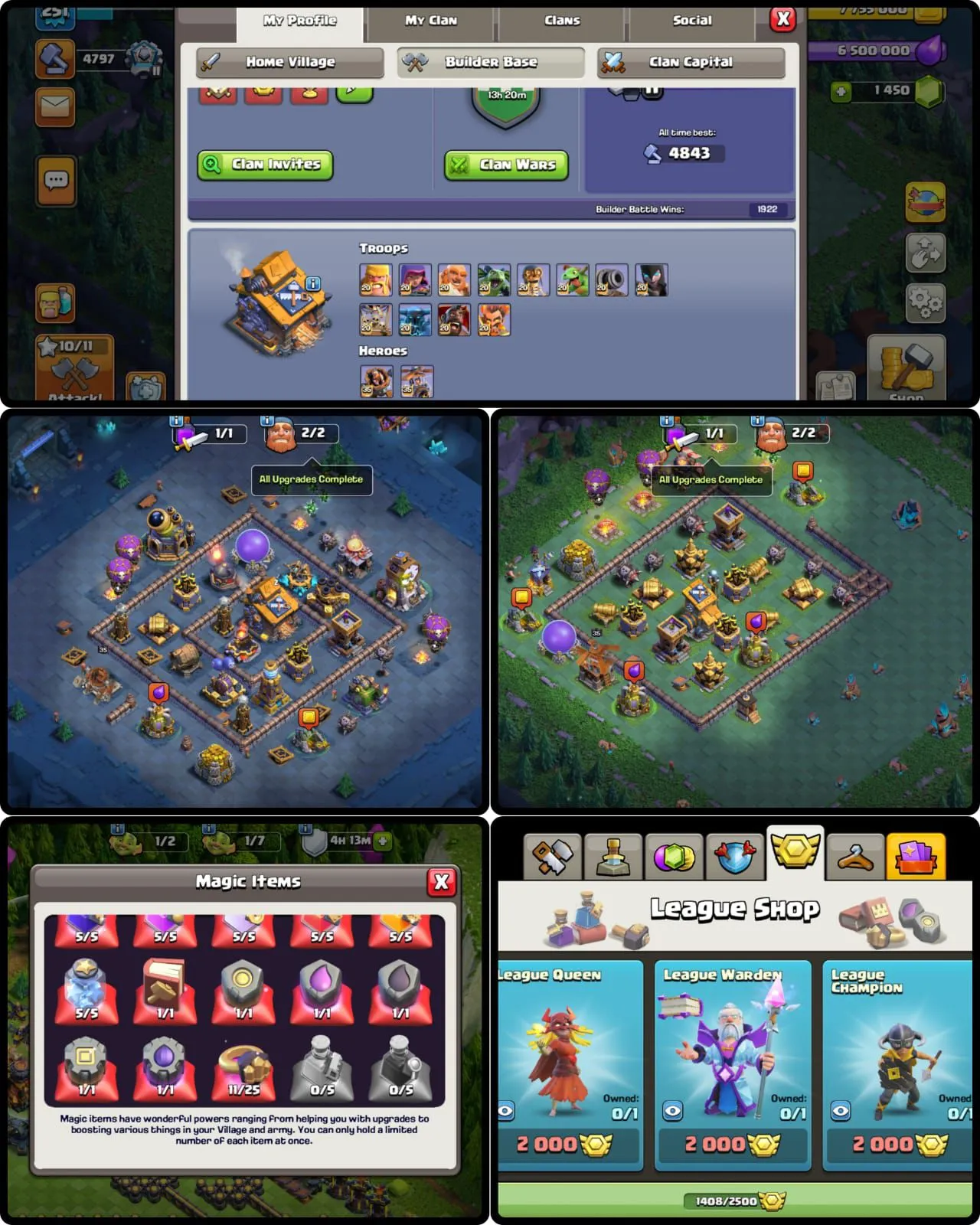MAX BUILDER BASE TH 17 ALMOST MAX XP 251🍀ACTION FIGURE 26🍀MAX 5 EPIC EQUIPMENTS🍀SUPERCHARGED DEFENSES TOWNHALL 17 MAX🍀MA714