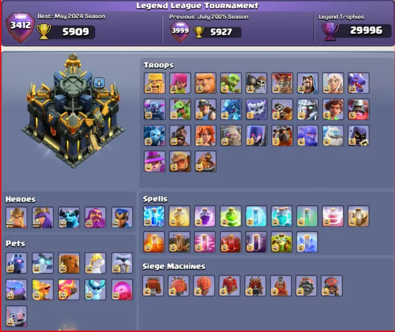 RAREST TH17 FULLY MAX🔥5000 WARSTARS🌟28 MAX EQUIPMENTS😱[ 10 MAX EPIC EQUIPMENTS]🤯🥵CHAMPIONS SKIN SET🔥30K LEGEND TROPHIES🏆40 PREMIUM HERO SKINS🥶
