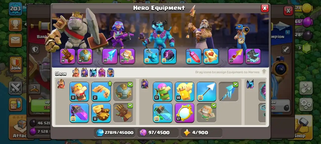 Sale🔥TH 15 max🔥high heroes level 84/90/61/65/40☠️10 epic equipment⚒️6 builder’s⚒️all helper opened✅13 heroes skin