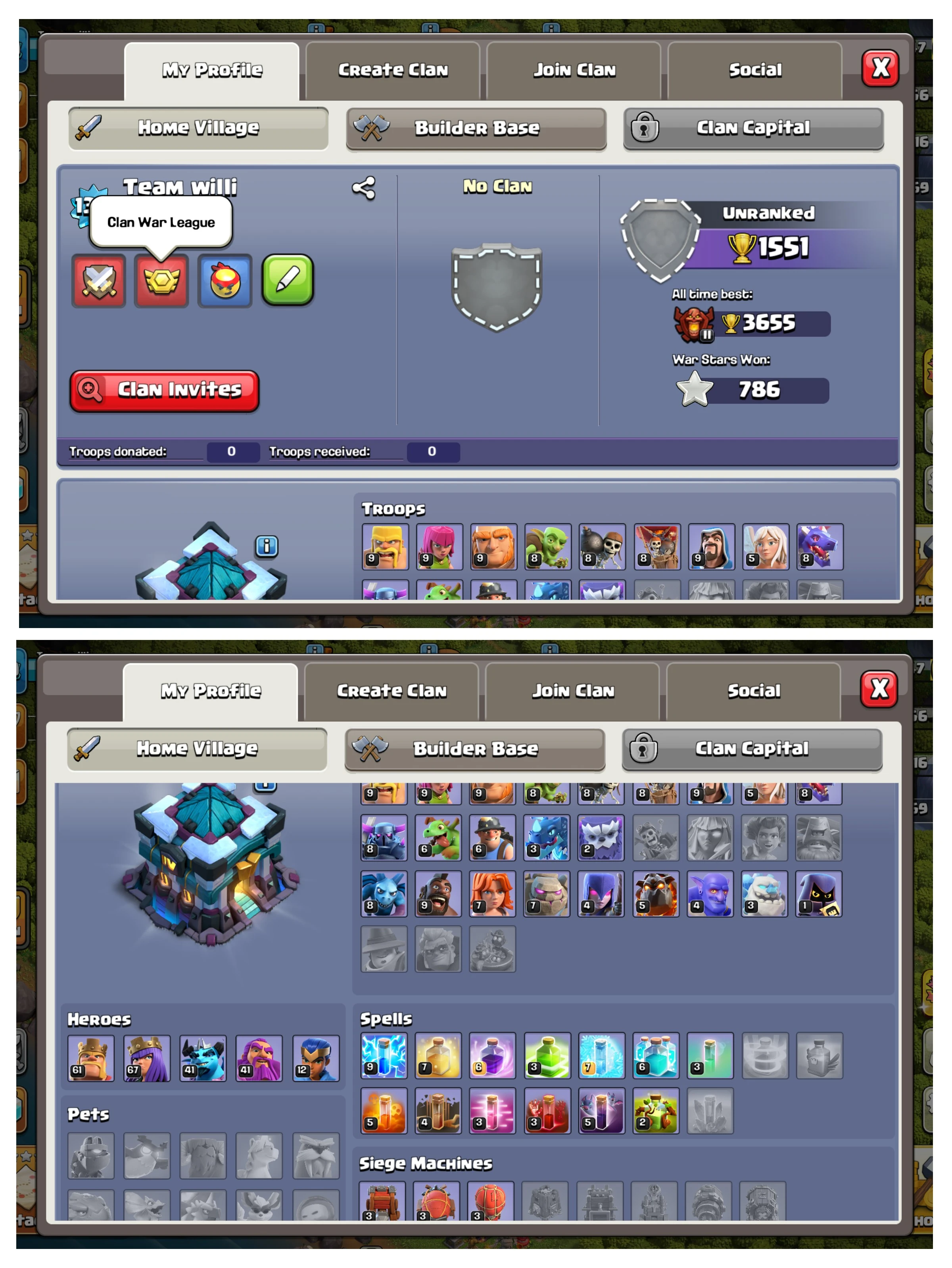 Th 13 👑 High Level Heroes 💥 | ⚔️BK 61 | 🏹AQ 67 | 👹MP 47 | 🌀GW 41 | 🛡️RC 12 | 🏰 TH13🔥 | 🎮 Lvl 139 | 💎 69 Gems | 🏆 3388 Highest Trophies | ⭐ 786 War Stars | 🎖️ CWL 170 | ✨ Raid 1900 | 🎟️ Magic Items 🎁 + Epic Equip 💫 | 🔄 Name Change + 500 Gems