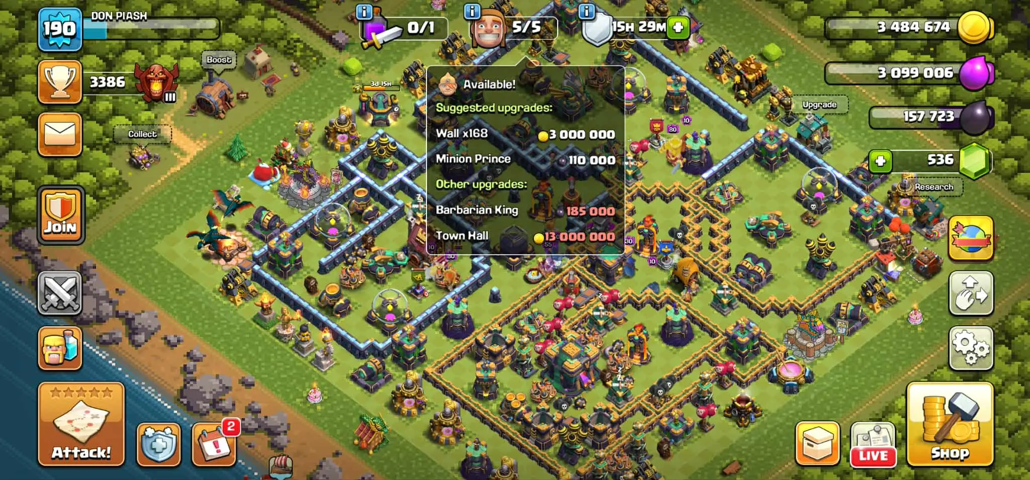 TH 14 Max♦️Max Heroes +Defence♦️Nc 500♦️Xp 190♦️War star 2764♦️Best Deal♦️