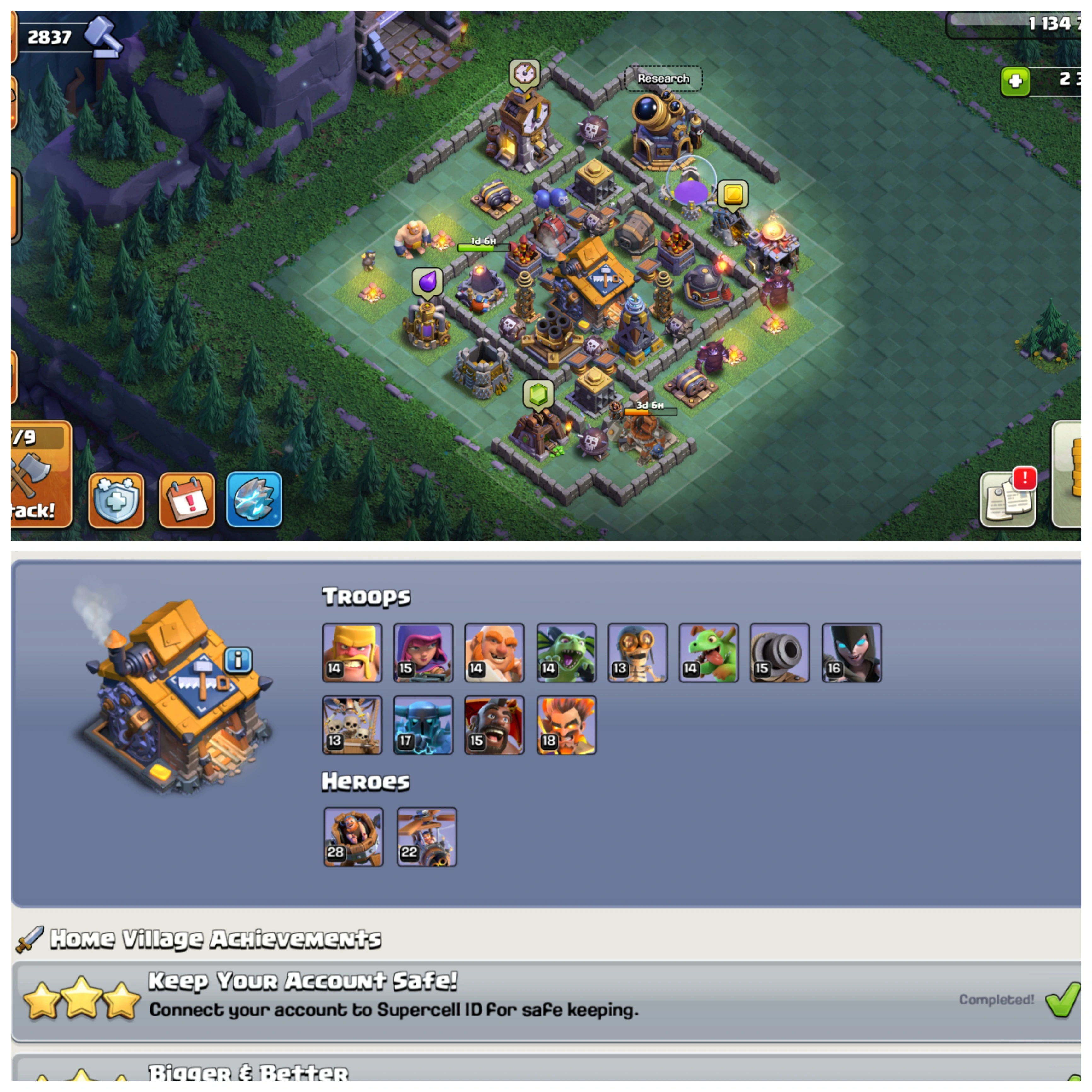 🔥 TH 16 Fearless 🧩 8 Epic Equipments ⚒️ Heroes: BK75 AQ90 MP53 GW56 RC31 ✨ Name Changeable 🎁 Stacked Items 🏅 200+ CWL Medals ⚡ Instant Delivery