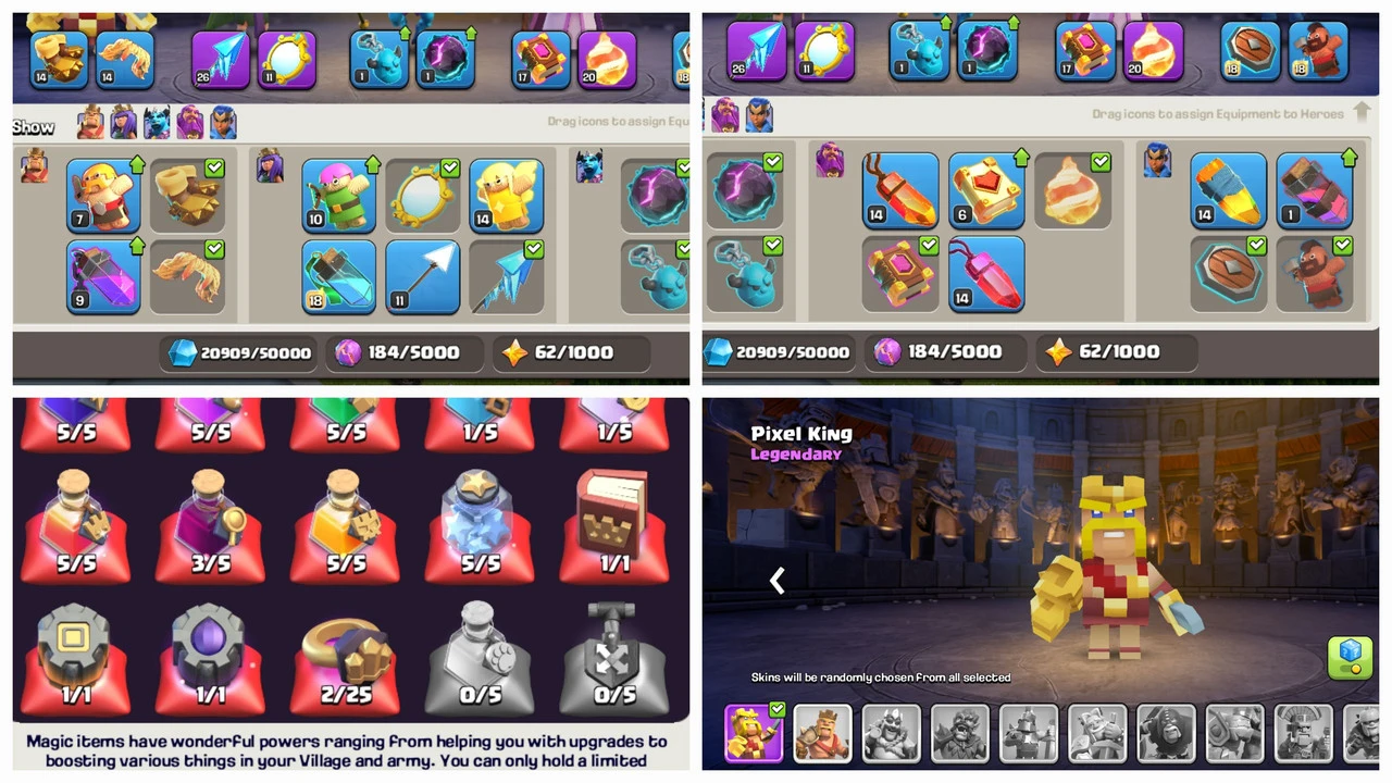 TH 16 Good Defence & Troops 🥇 Level 218 🔮 Heroes 41_71_52_44 ⭐ Gems 1251 🪵 3 Epic equipment 🪓 Nc 1000 Gems (Android &iOS) 🪖 M1887