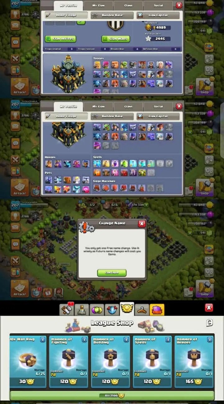 TH 17 DEFENSE MAX ➠ CWL MEDEL 800+ ➠HIGER LVL EQUIPMENT ➠GOOD TROPOS LVL ➠XP 207 ➠NC FREE ➠HEROS:-61-78-45-33 ➠ LOTS OF MAGIC ITEMS