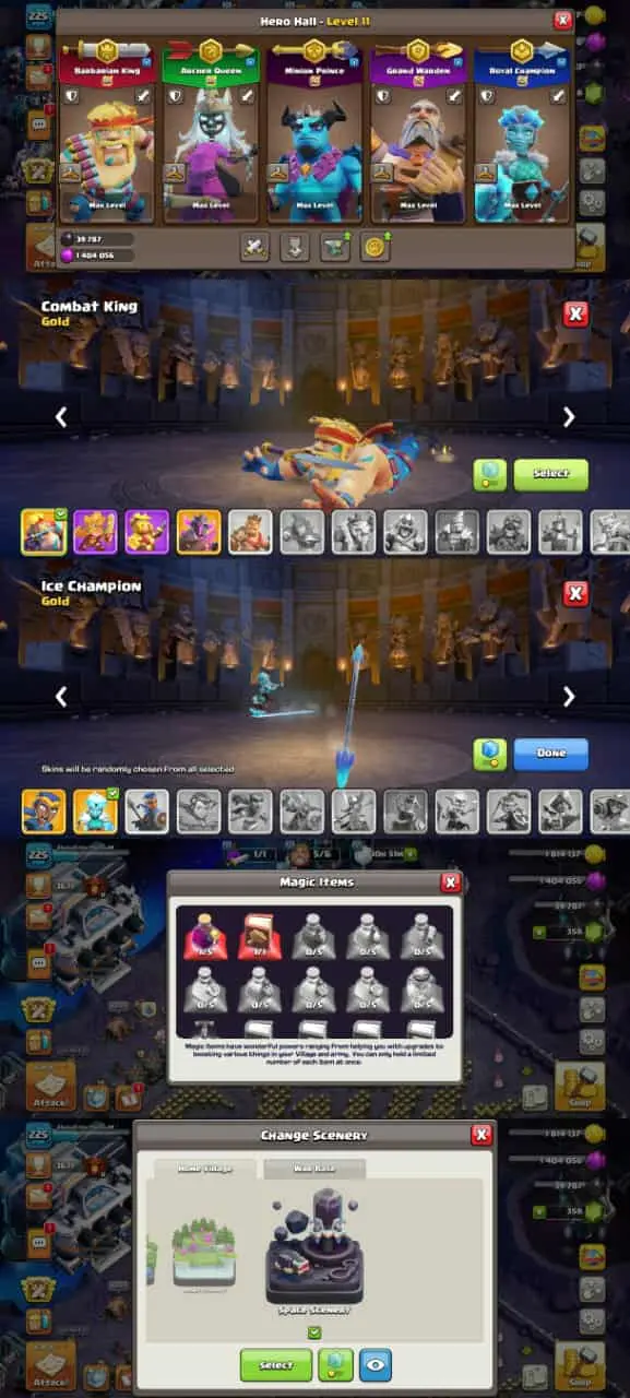 TH 17 NEAR MAX|7 7 EPIC MAX|GG-MM-FB-RS-EB-SB-AF ALL MAX EPIC|HEROES-WALLS MAX|SPACE SCENERY|SKINS AVAILABLE|