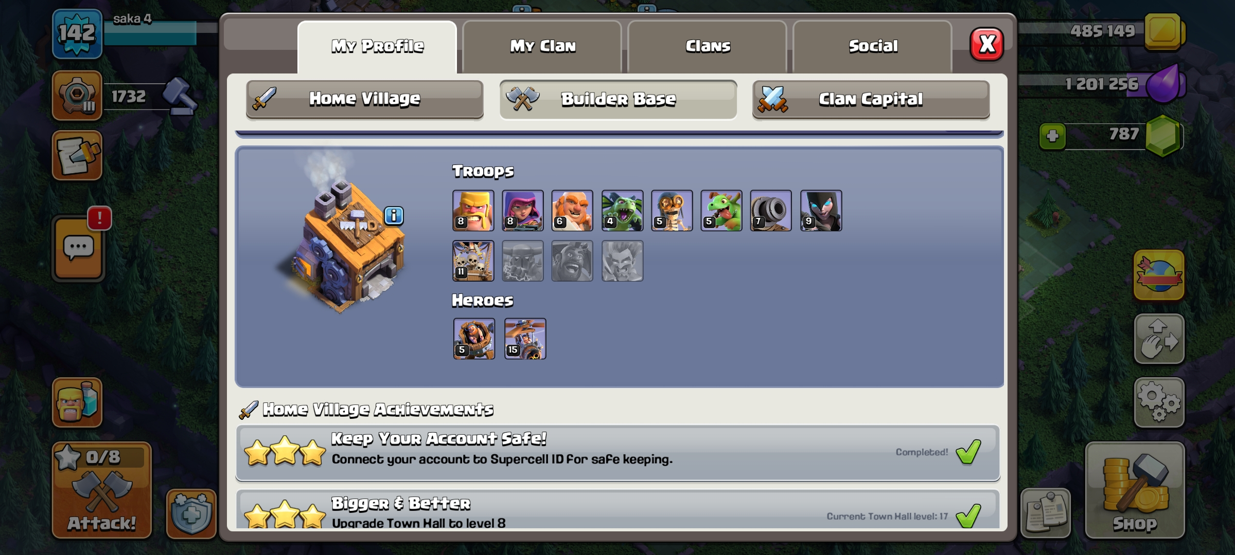 TH 17 RARE~HERO EQUIPMENT EPIC FULL~HERO BIG AND TALL- XP 142 /BK 52-/AQ 78 /PM 40 /GW 22-/RJ 23-/LOG SUPERCELL ID-/Andoid and ios|SCREENSHOTS ON DESCRIPTION