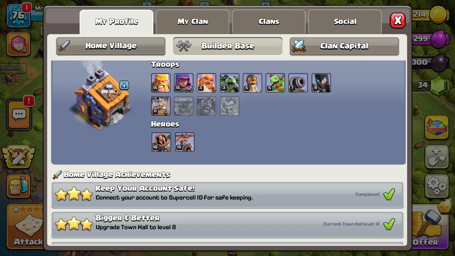 TH12 | 76 LVL | 1651 Trophy | 34 GEMS | 37BK | 33AQ | 17GW| 0RC | FULL ACCESS | IOS/ANDROID (SCREENSHOTS INSIDE)