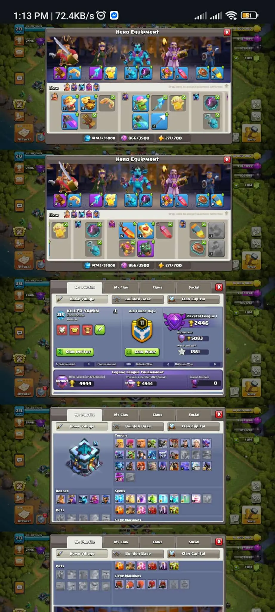 TH13 MAX ID | HERO'S: 61-74-40-43-25 | MAX DARK BLUE WALL | LAB MAX | 3x EPIC | XP-213 | PIXEL SCENERY | LEGEND HIT | APPRENTICE BUILDER LVL3
