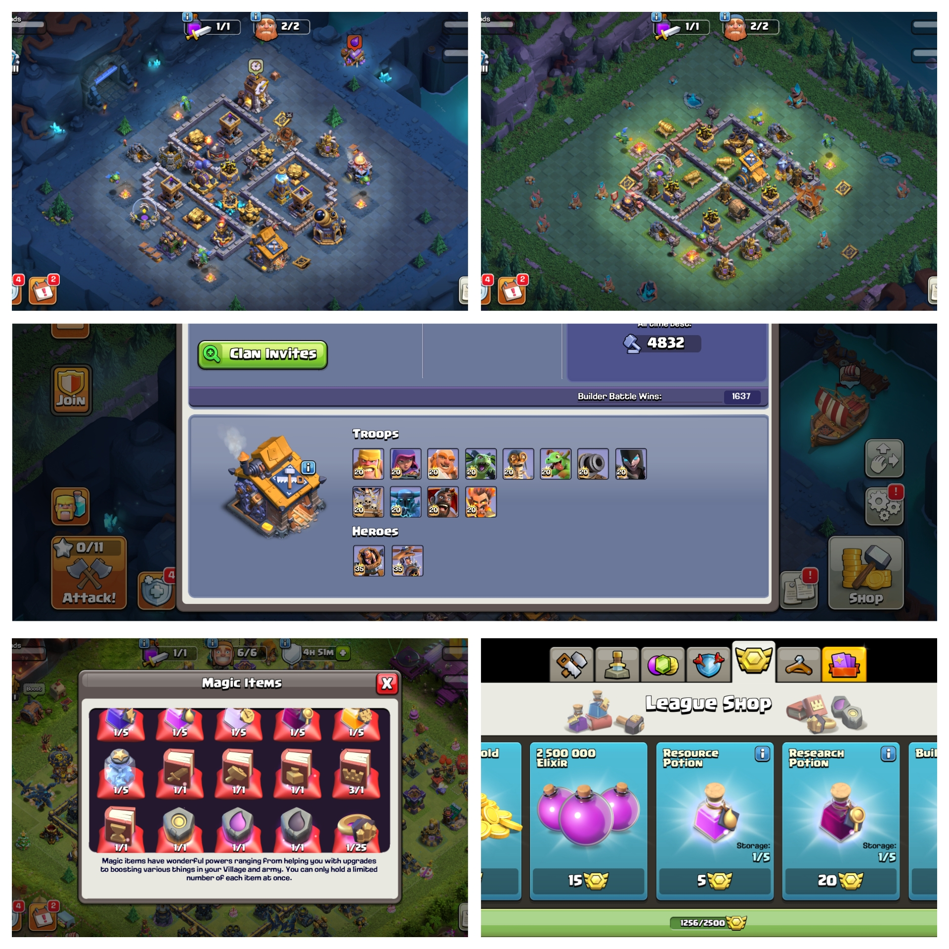 TH17 BOTH VILLAGE FULL MAX-26x EQUIPMENT MAX -24x HERO SKIN-6113 BEST-16900 LEGEND TROPHY-HIGH XP280-1256 MADEL-FULL ACCESS