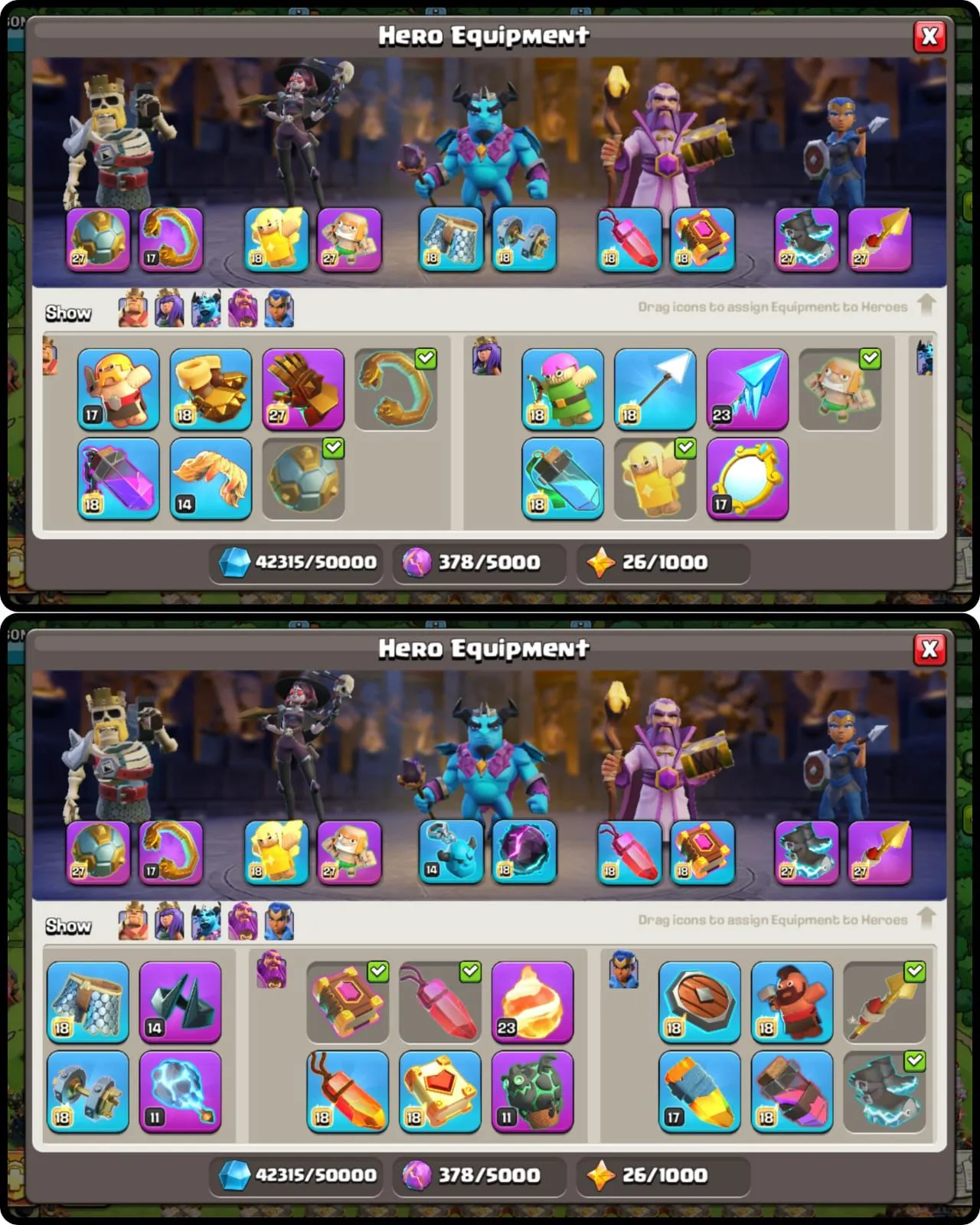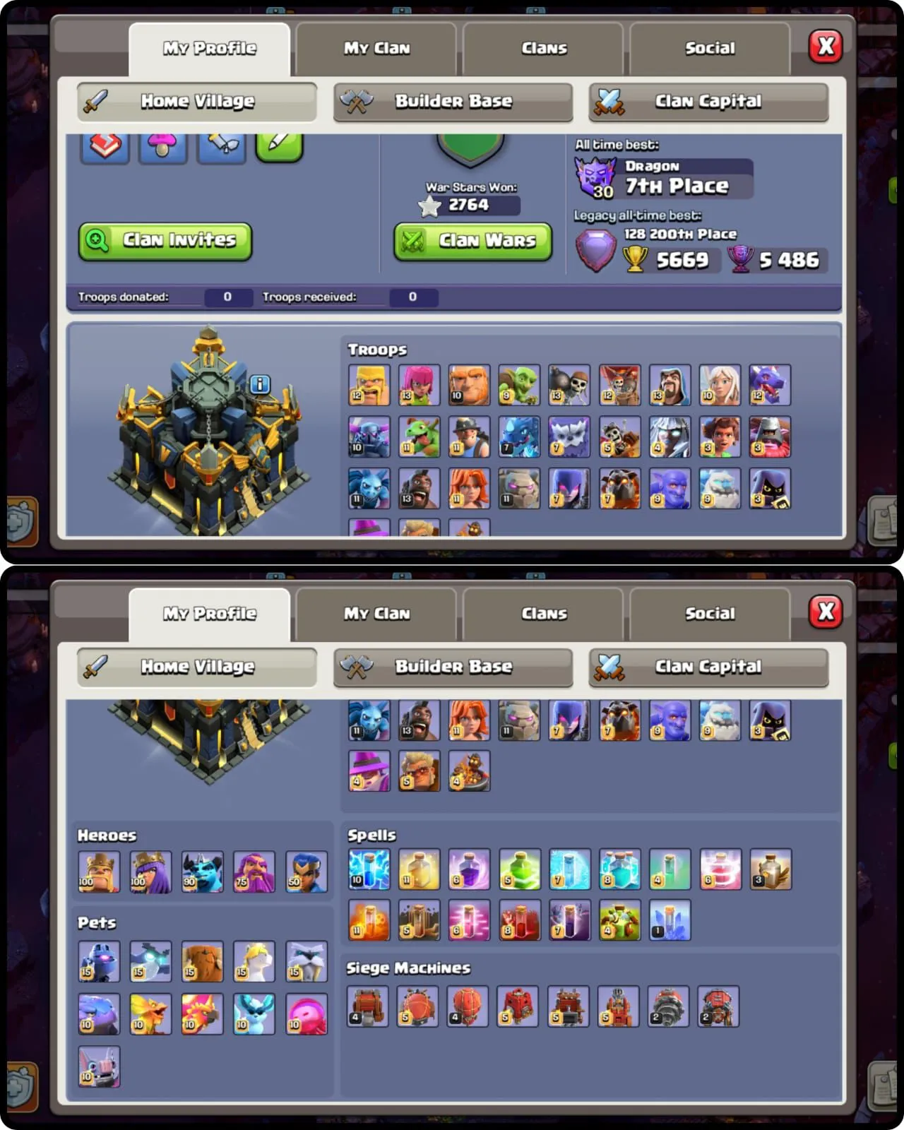 ♻️ TOP LEVEL EQUIPMENTS MAX ♻️ TH 17 MAX ALMOST ♻️ 12 EPIC MAX ♻️ 2x SCENERIES ♻️ 5 HEROES MAX ♻️ HERO SKINS ♻️ DEFENSE MAX ♻️ STACKED ♻️ INSTANT EMAIL ACCESS ♻️ S09