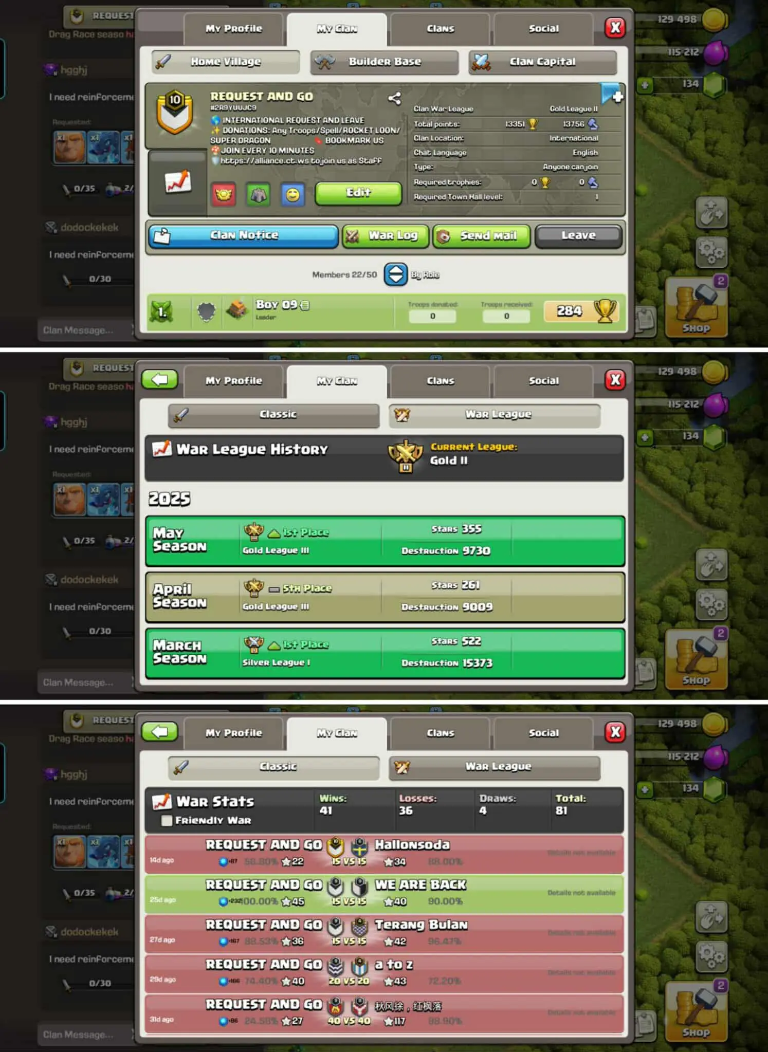 CLAN NAME - GHOST EMPIRE | CP 5 | GOLD 2 LEAGUE | WIN 33 | LOSE 45 | CHEAP RATE | FAST DELIVERY