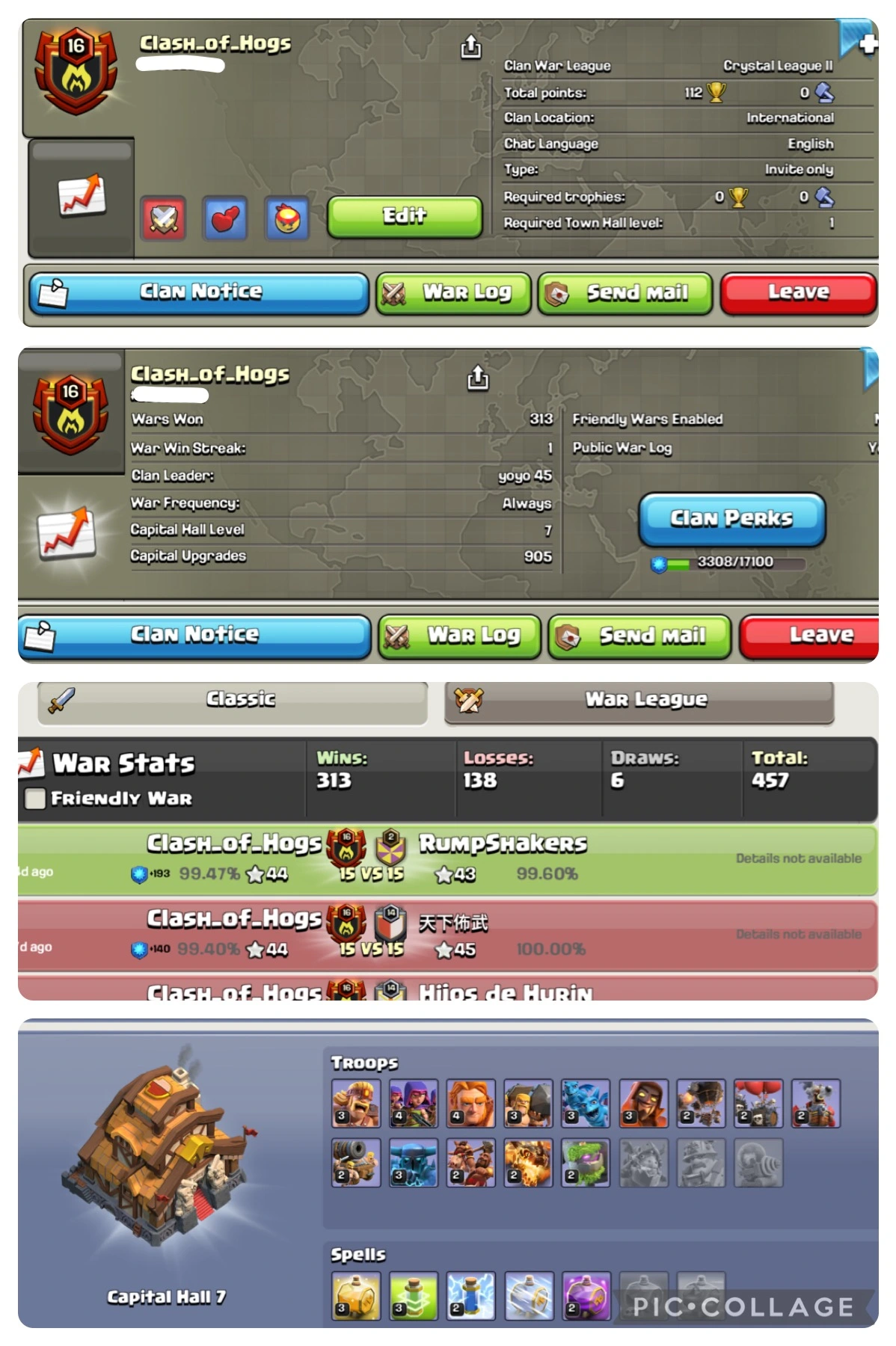 Clash of Hogs | LVL 16.3 | WARLOG W-L-D:313-138-6 | CWL League: CRYSTAL 2 | CC : ALMOST 8 !!