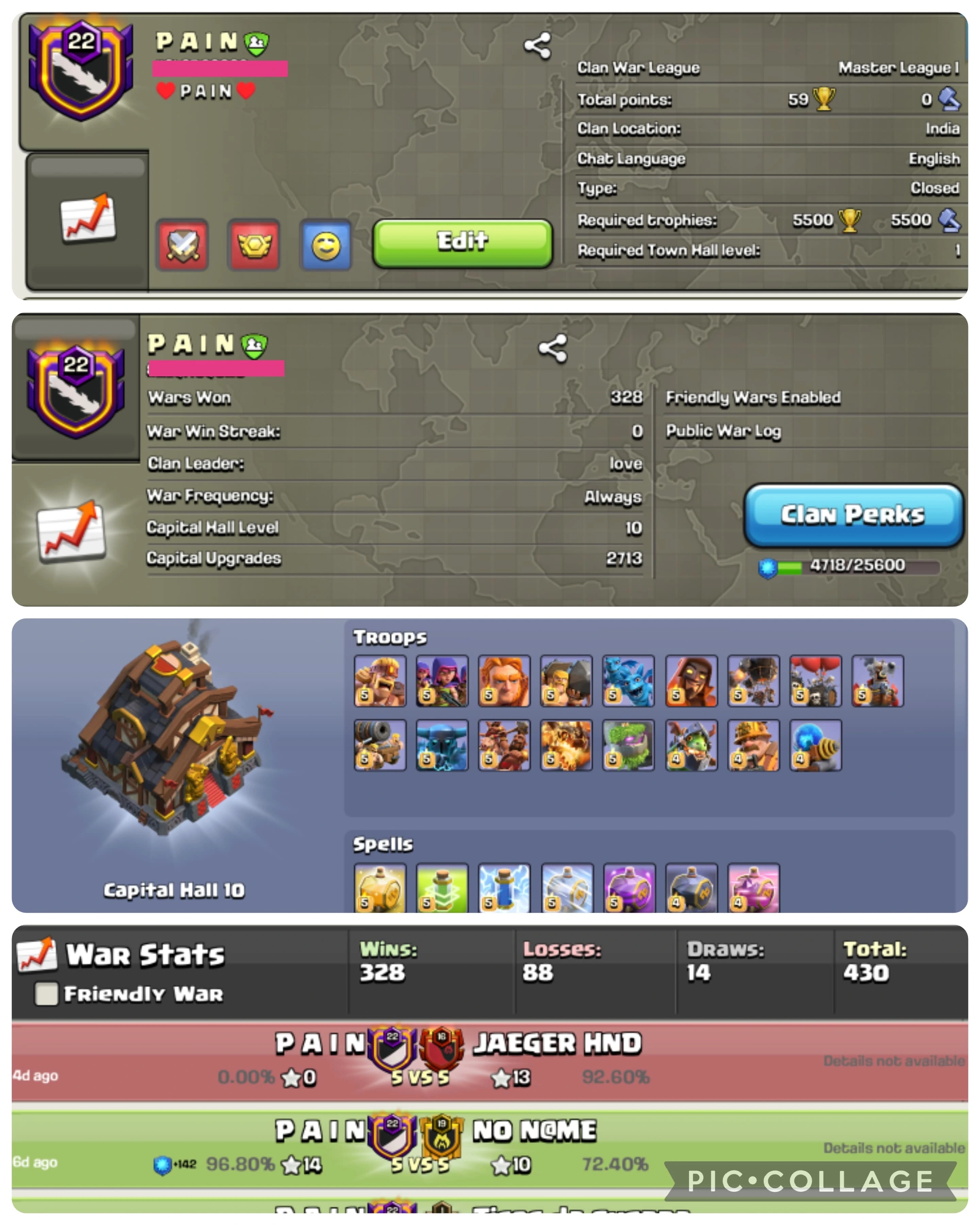 🔥NAME- Black Tigers | LVL 28.5🥵| 💥WARLOG W/L/D:420/206/3| CWL League: MASTER 2🏆| CC: 10 FULL MAX !!💥