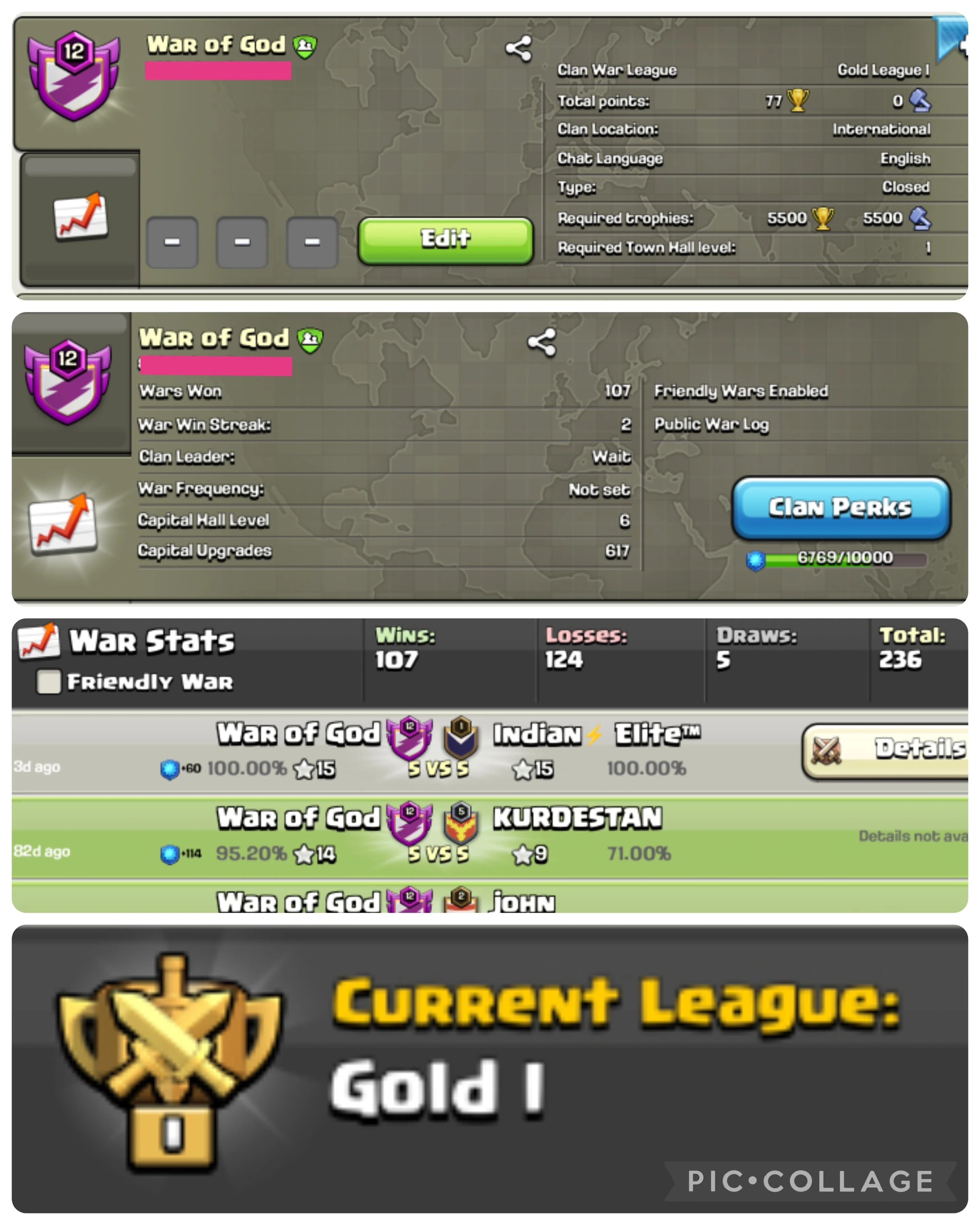 😻GOD OF THUNDER ⛈️ LEVEL 12 🌹 CLAN CAPITAL LEVEL 7 💥 36 WINS 109 LOSSES 1 DRAW 🕊