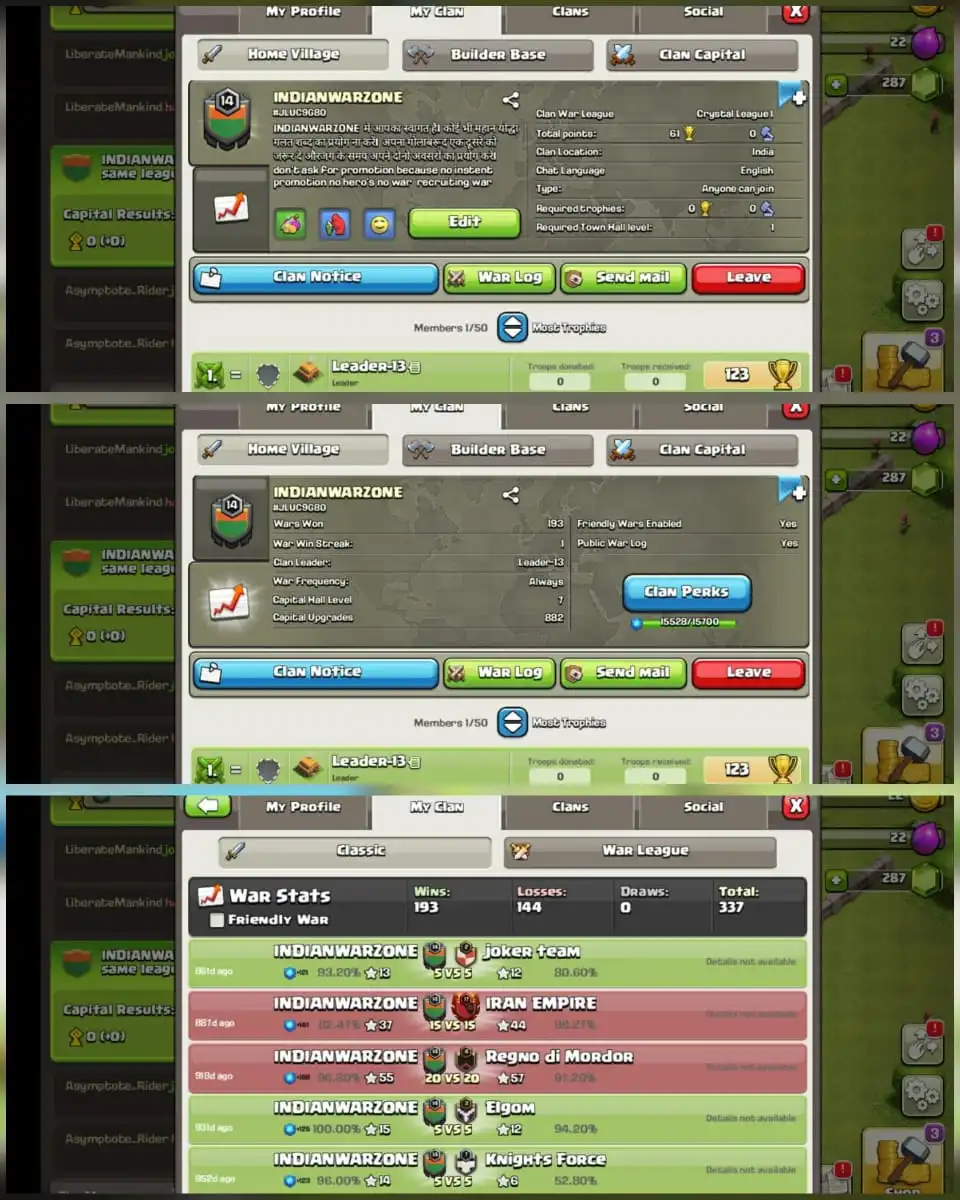 Name-indo army]CC 10]level19] Crystal 2]325 Win-151Loss ]Fast Delivery] Cheap Clan