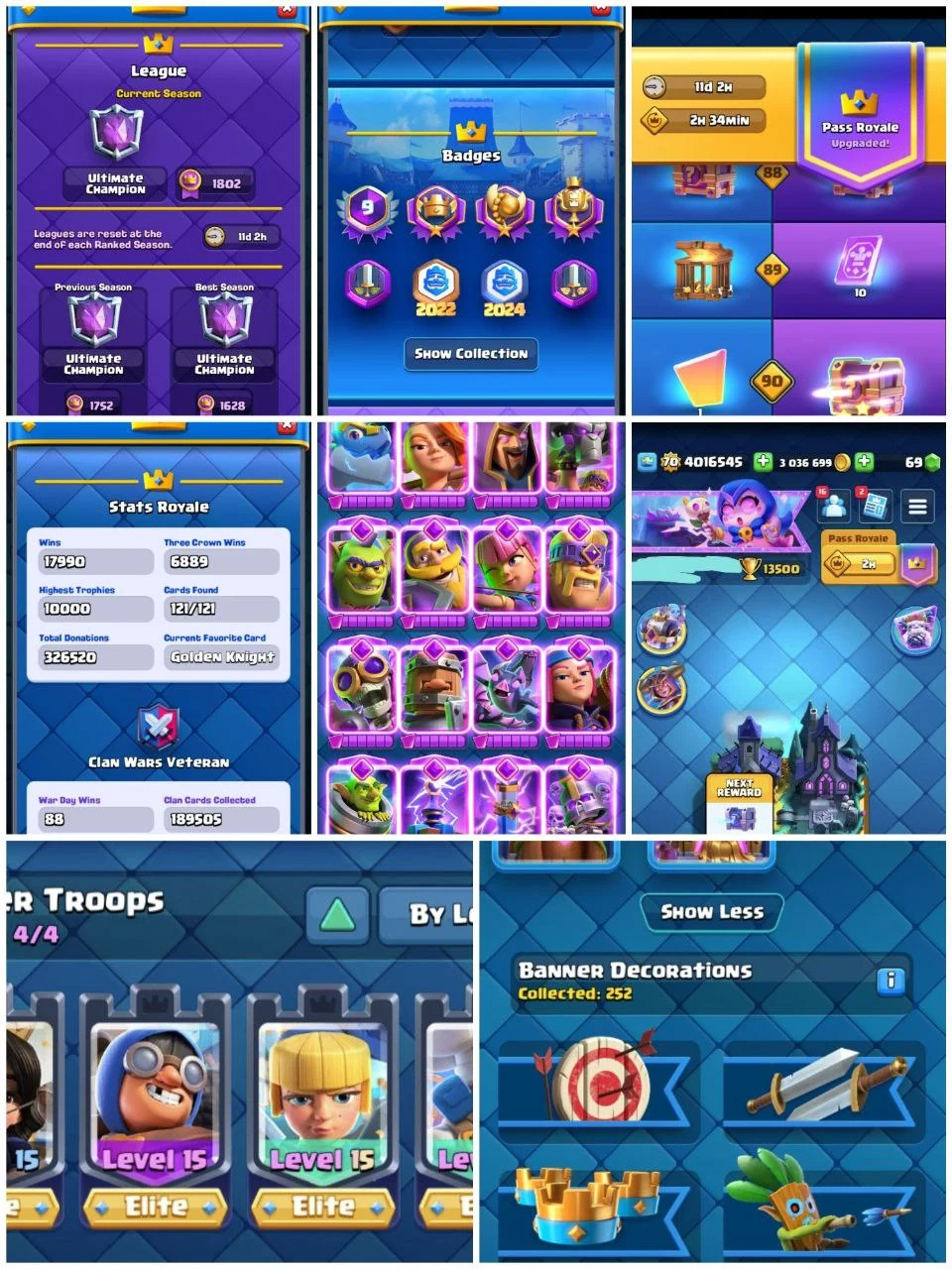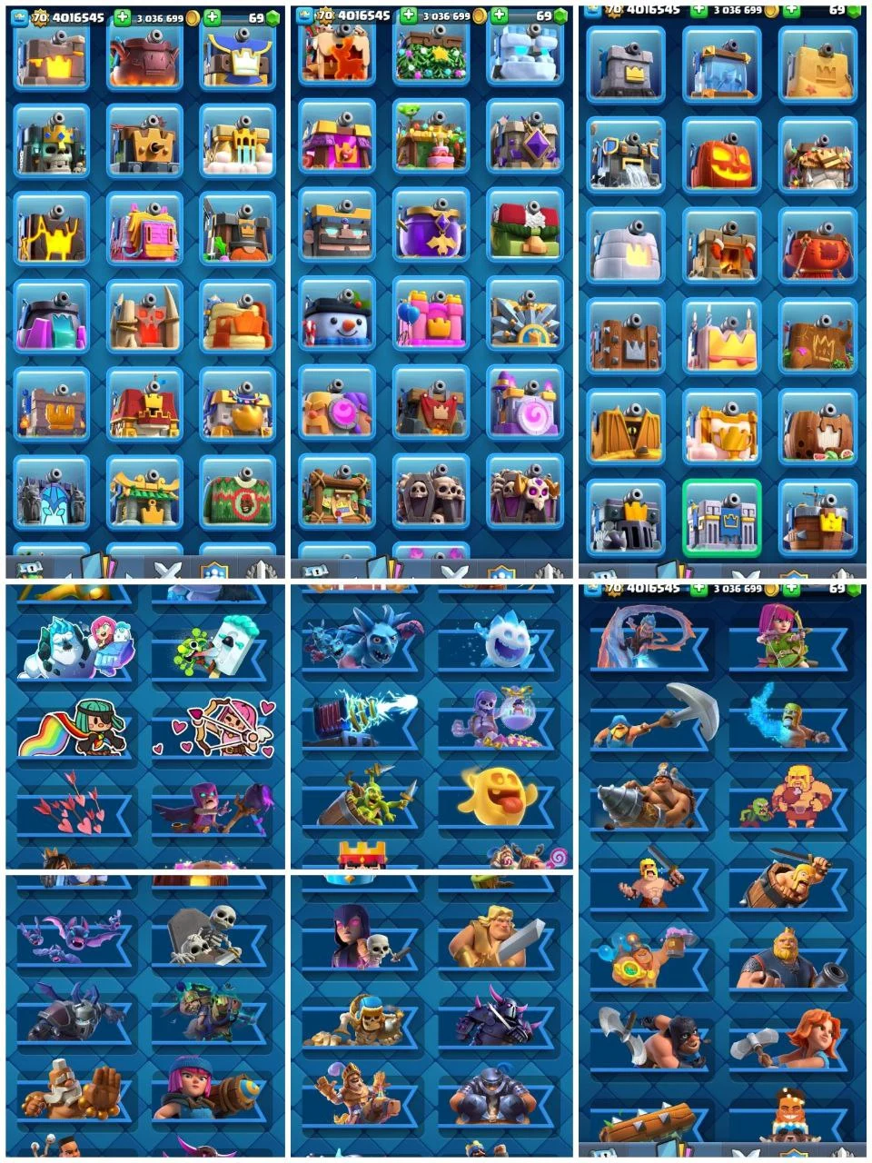✨️ 384/384 EMOTES 💎 MAXED OUT 70 XP 👑 22 EVOLUTIONS 😈 94 ELITE CARDS 🎯 S1 FLIGHTING FISH 🤯 55x TOWER SKINS 🌟 LEGENDARY CRYING GHOST 🏅 ULTIMATE CHAMPION 🔥 EMPEROR KING 🏆 ANIVERSARY HEALER 💰 COCONUT PEKKA 🎈 YEAR 2020 SPECS BOMBER EMOTE ✨️ 13500 TROPHIES ✅